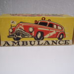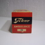På endeflappen står der “Tekno Ambulance” og så nr. på bilen i æsken, som samtidigt fortalte hvilken farve bilen havde.