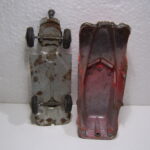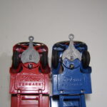Ovenfor til venstre annonce i Legetøjstidende fra april 1950 og i midten en annonce fra stormagasinet “Messen” fra 15. november 1949 bragt i Politiken, hvor bilen faktisk kaldes en Buick. Til højre reklame fra Illums Julekatalog fra 1952.