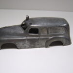 Karosseriet er enormt robust. Jeg tror ikke man kan ødelægge det ved almindelig leg. Der er graveringer af midterlisten på fronthjelmen og faktisk også af motorhjelmen, selvom de er lidt utydelige. Alle tre døre med håndtag er markeret. Sideruderne er støbt ind i bilen og der er sat hvide gardiner i vinduerne lavet af papir. På taget ses en projektør og to sidelygter, som er malet i samme farve som bilen med gule paraboler.
