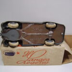 Buick nåede at komme i de gamle æsker med løst låg og kasse til bilen. Låget var prydet med tekst “Tekno Dansk Legetøj”. Så ved vi at Tekno brugte disse æsker ihvertfald helt op til 1950 og måske også længere.