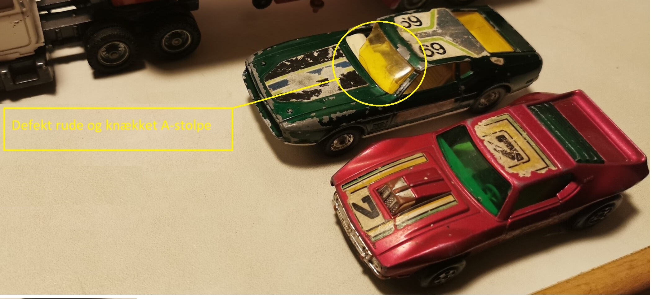 En Corgi Marc lastbil og en Corgi Mustang og en Matchbox bil de er ikke i den hel store kurs jeg vil komme med et forsigtig gæt på en samlet pris på 150-200kr🥹