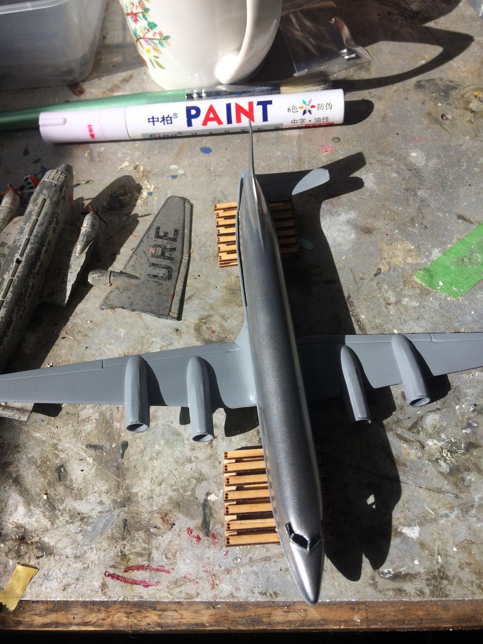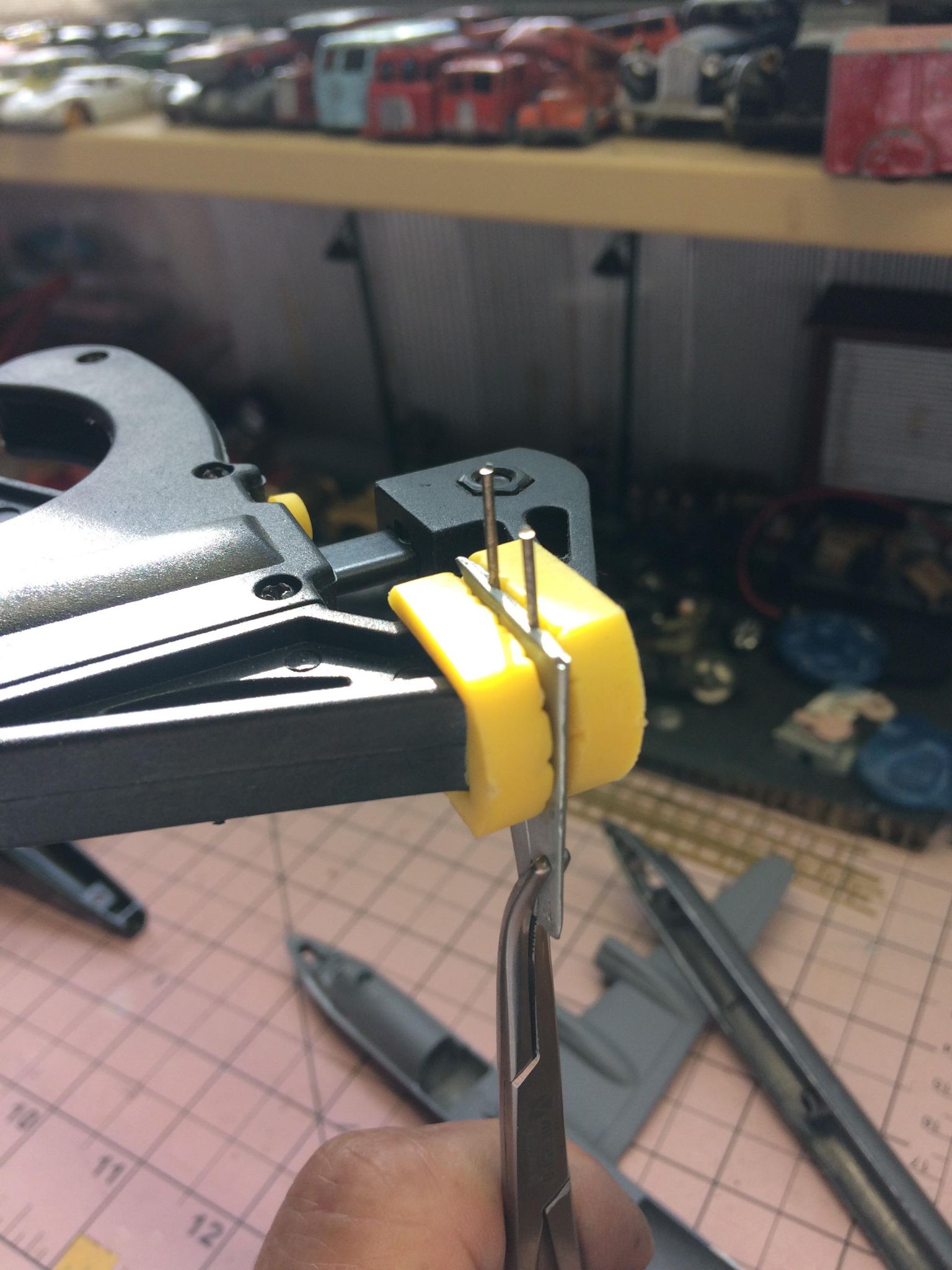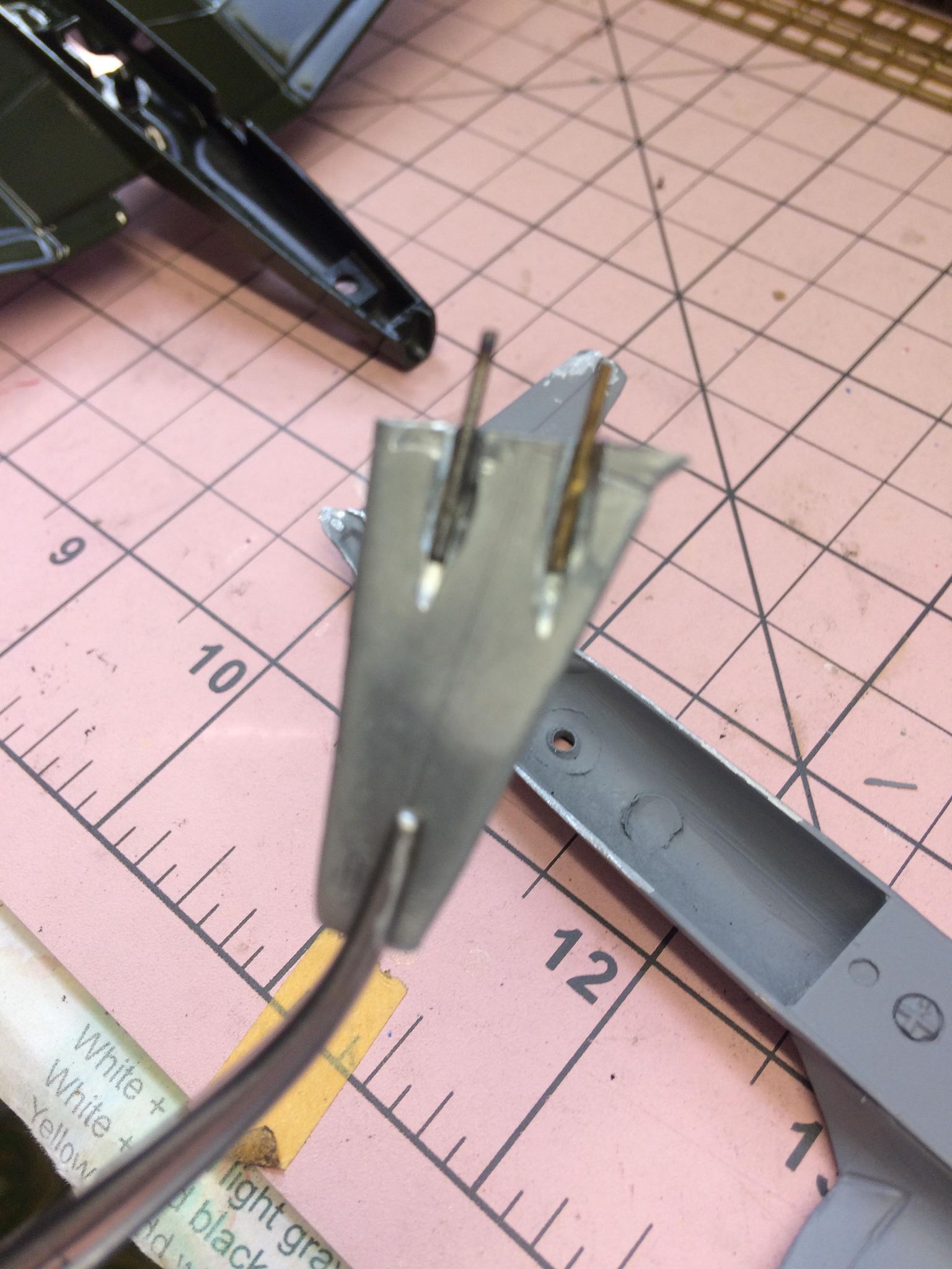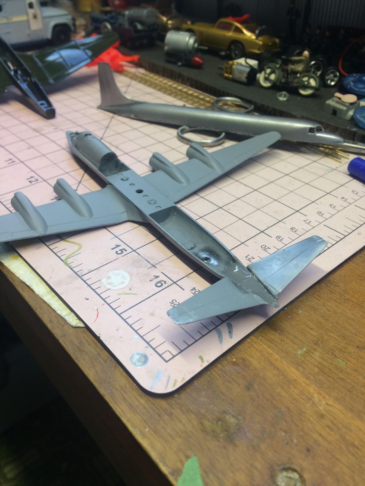 ParticipantWhile waiting for paint to dry I made a start on reattaching tail fin to DC 7 hope pictures are self explaining , my aim is to make it strong enough to be handled once again with out fear of bits falling off .Epoxy is JB Weld Metal 24 hour setting , takes a while to harden off but once set its easy to sand back.In a couple of days I will sand epoxy smooth and adjust to make both body parts fit perfectly before trying to replace broken rear fixing pin .