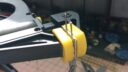 section of tail fin also broken locking pin at rear of body and broken window pillar .