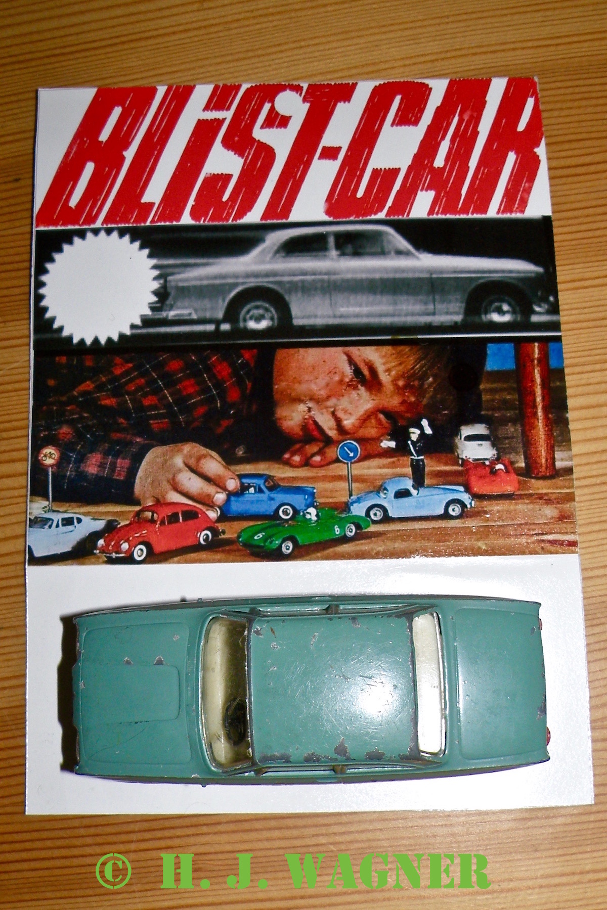 Den grønne Blist-Car model har helt klare umalede forlygter. Der er alså ud over de sparede overførings mærker/navnetræk, også sparet på bemalingen af forlygterne.