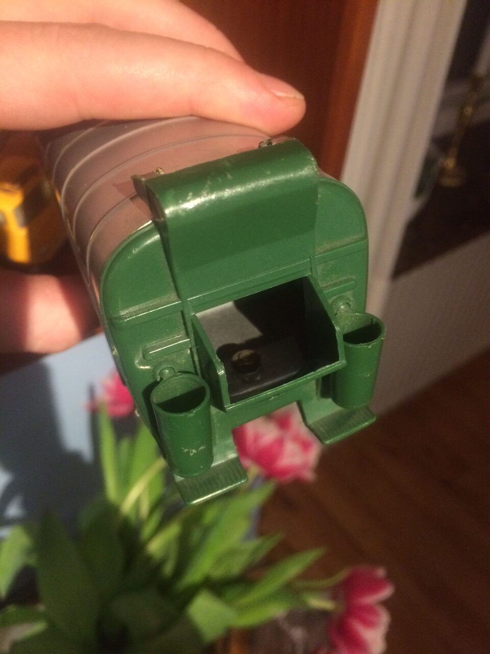 Hej Johan ja på de originale skraldespande var låget til at tage af det er nok også derfor de for det meste mangler det lille blik beslag burde være til at finde der er rimelig mange “defekte” skraldebiler i om løb til små penge jeg skal se om jeg har et liggende ???? hilsen Ma Super