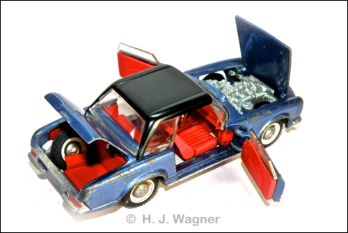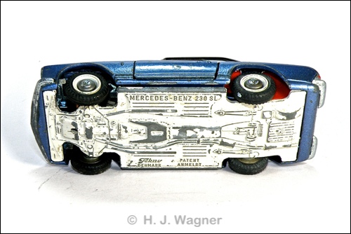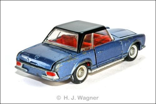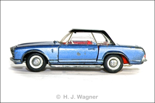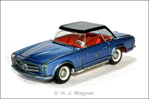 Jeg har fået finger i en blå metallic Mercedes-Benz 230SL hardtop model. Farven svarer meget til de blå metallic farver som bla. blev brugt til LION-CAR Opel og DKW modellerne. Jeg synes ikke den kendes fra Tekno, bortset fra på gamle Dodge/Buick lastbiler.