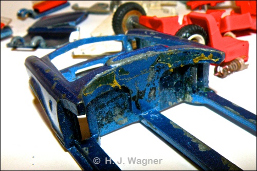 Som det vil fremgå af den røde bil fra JOAL, har den aftegning til nr. pladen mellem kofangerne bag på. Denne aftegning har TEKNO ikke, og det har min blå bil heller ikke.