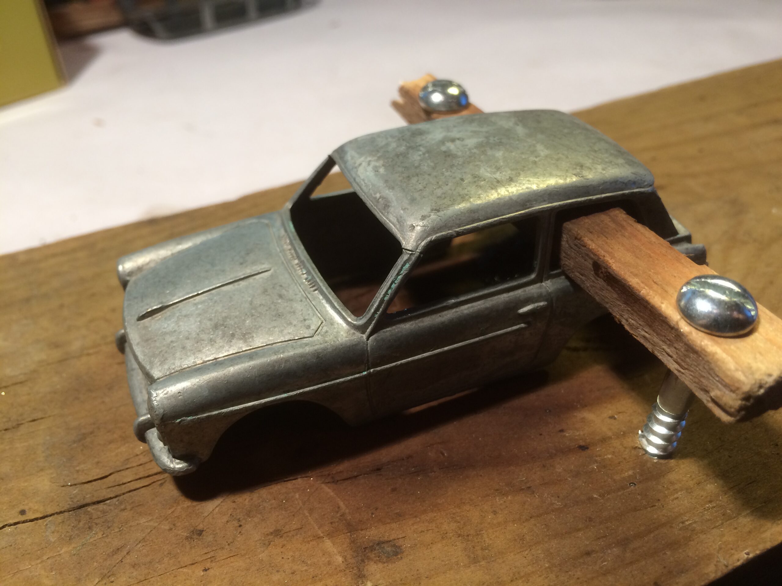 ParticipantSå kom den lille Austin A40 i opretter bænk taget +stolper kom på plads nu er det maleren der tager over