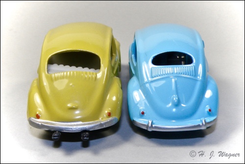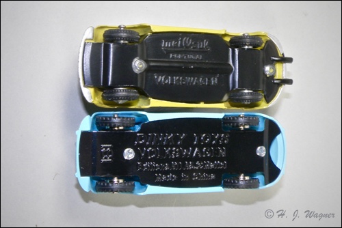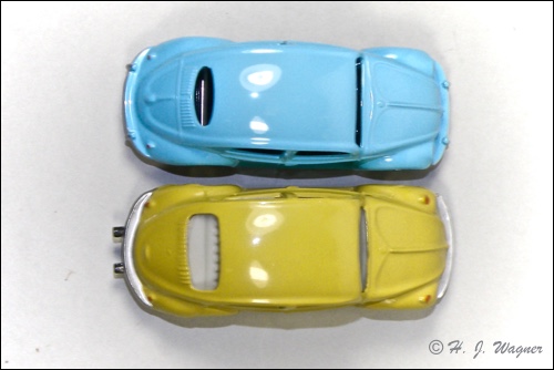 Rigtig fine VW bobler du har. Jeg kom til at tænke på at jeg tit har set disse VWer til salg som byggesæt hvor karosseriet ikke er malet, og der svare delene til din den gule, nemlig med trådhjul, rødt interiør og sort bund, i et sådan et tilfælde vil lakeringens kvalitet jo afhænge af den enkeltes evner som maler. Men jeg skal da ikke kunne sige om det kan være en af dem, men måske det er en muglighed.MVH Kim B S.