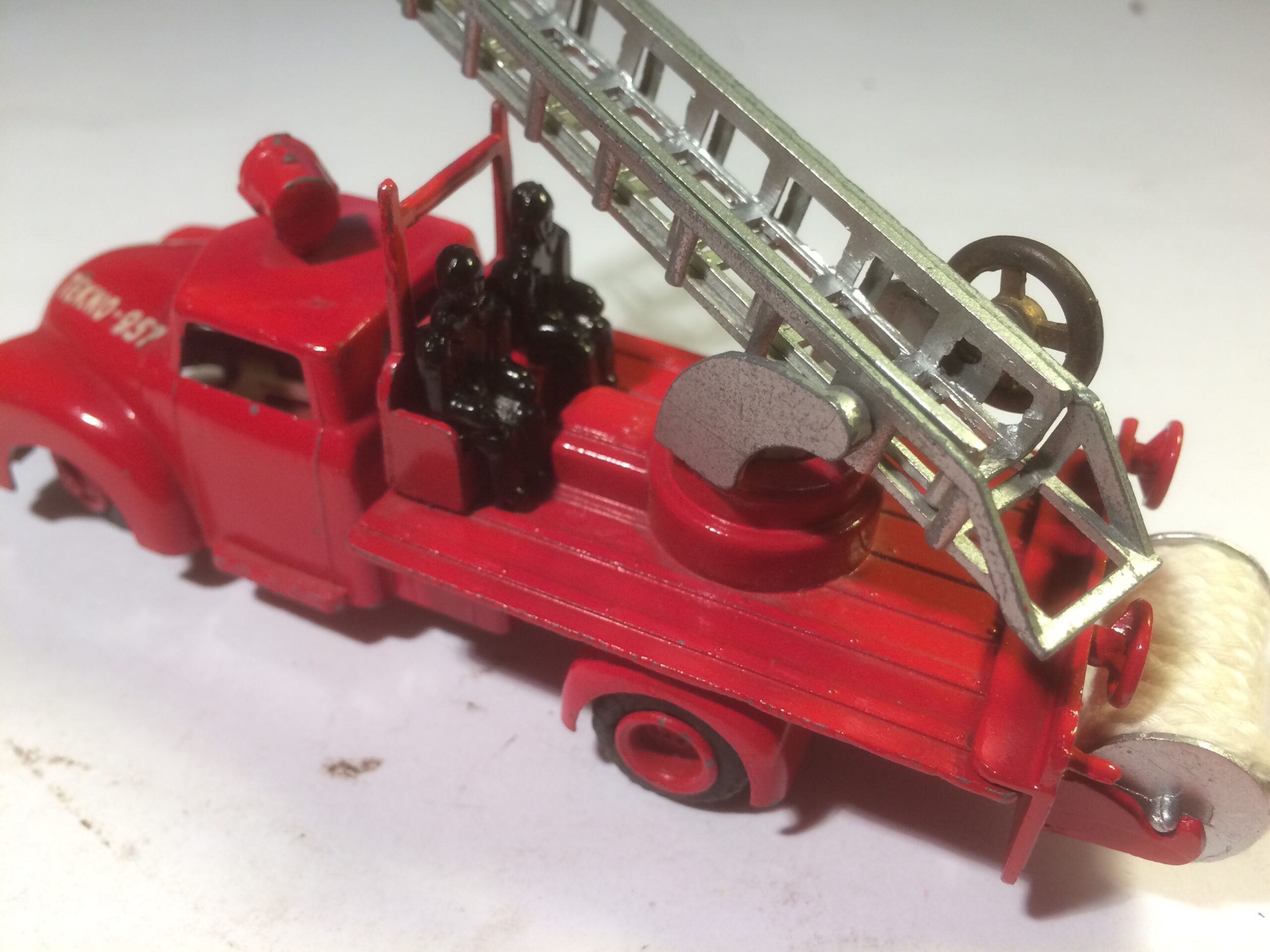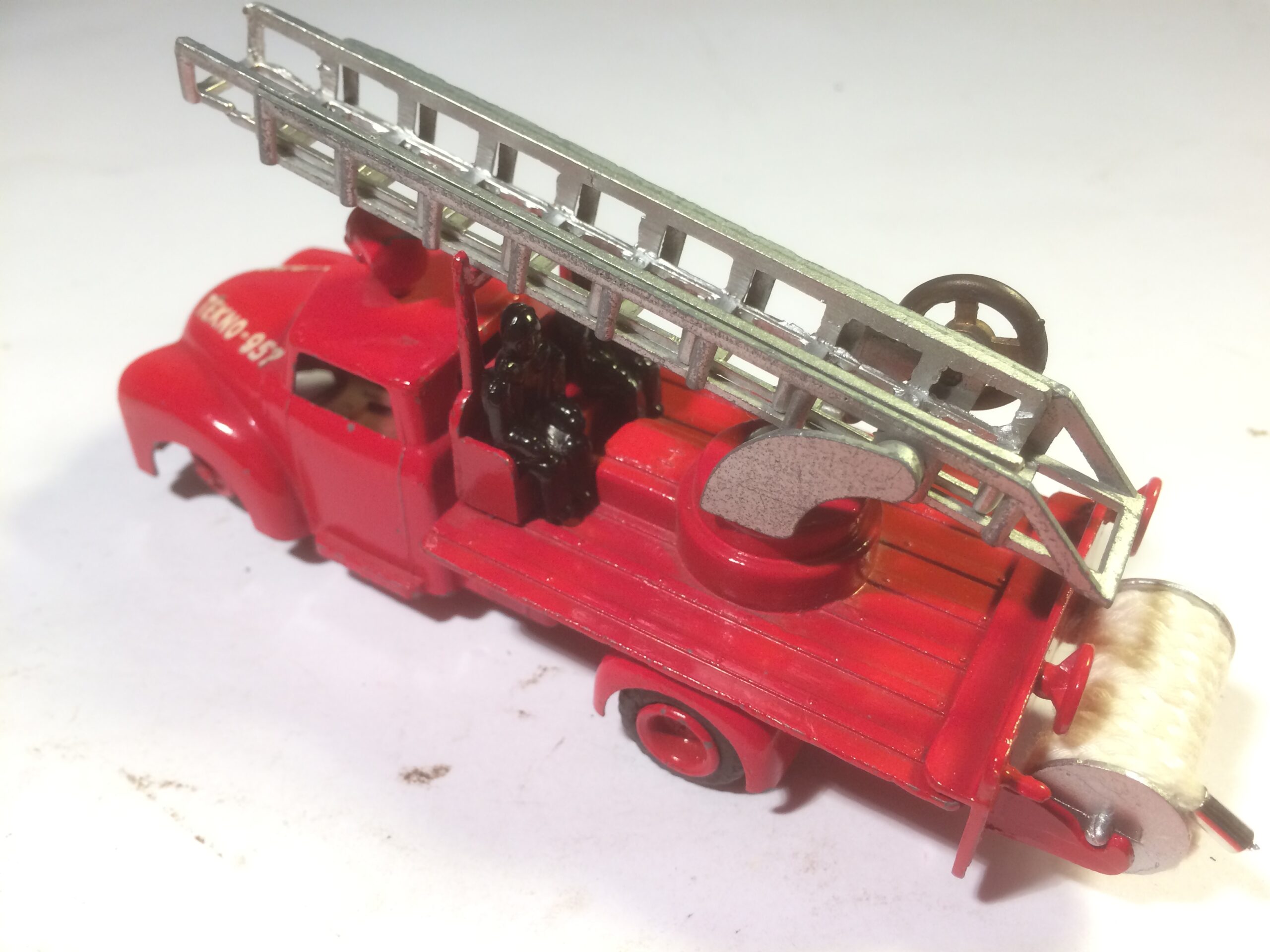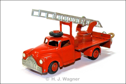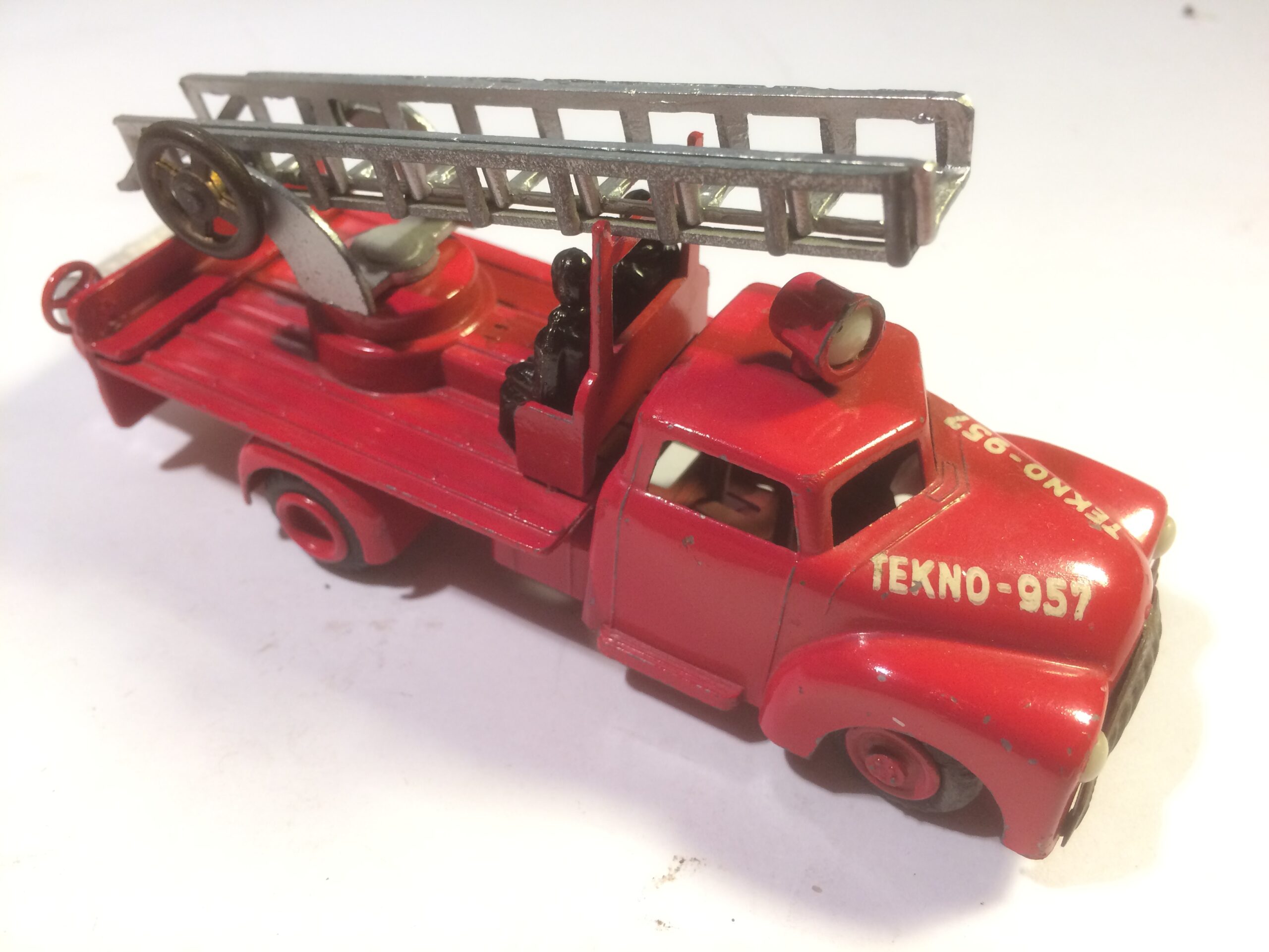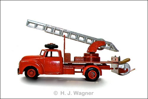 Nu var det heller ikke disse brandbiler der var oppe at vende i den tråd du startede Felmming. Det var om Triangel og VW stigebilen. (Min VW er under renovering) og i den forbindelse, nævnte jeg muligheden for at Tekno mere eller mindre havde kopieret Märklins stigebil fra før WWII, hvilket jeg allerede nævnede i 2016. Og så kom jeg til at kalde din originale Tekno stigebil for Vilmer, omforladelse.Som du naturligvis ser så har Vilmer bilen IKKE en projektør på taget.