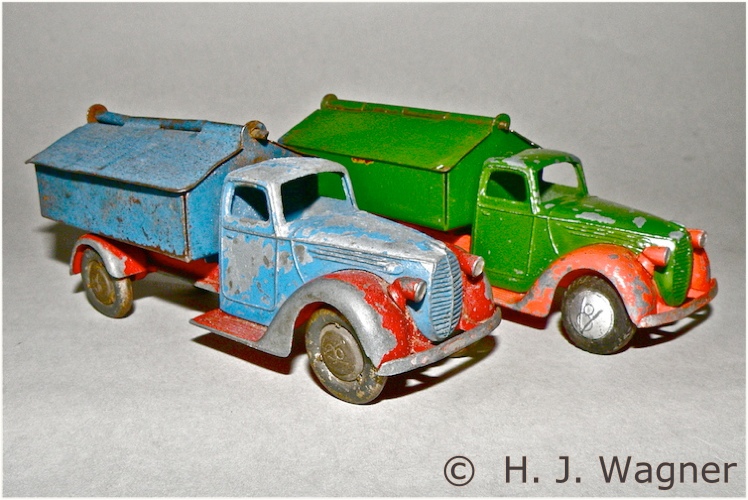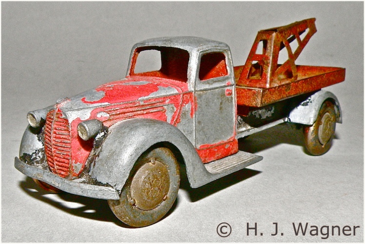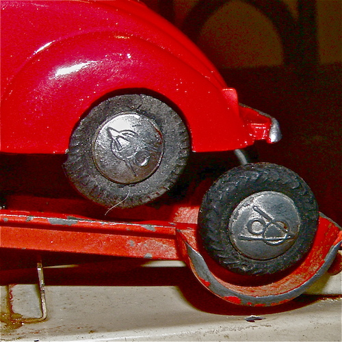 I also believe that the large tin cars had tin wheels first. They were also in two parts that were pressed together. The wheels were cast also in 1940. After the war these cars also got rubber tires. - ForfatterIndlæg