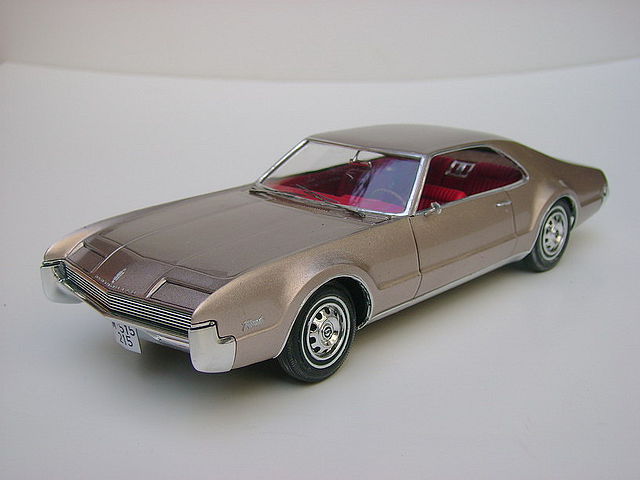 Skulle der laves et USA handels fremstød med legetøjsbiler, så har det ikke specifikt været Toronado modellen man i 1967, havde med i lommen. Det har nok mere været det, sælgeren havde med hjem fra USA som et ønske der ovre fra. Og her har det været uden tanke for hvor lang tid det tager at fermstille en produktionskalar legetøjsbil med det ønskede antal funktioner, i Danmark, sat i forhold til de meget hyppige modelskift især GM modellerne både fra USA og på verdens plan, præsterede. Toronado bilen i virkeligheden var allerede opdateret/Faceliftet rimeligt meget i 1969/70 ad hele to gange. Legetøjsbilen var således allerede i 1969/70 “gammeldags” Hele fronten havde fx. et helt nyt design, uden klap lygter.General Motors havde man vel egentligt et anstrengt forhold til, i en eller anden grad hos Lange og Tekno. Det er blevet til to Rekord modeller i halvtredserne, og en Kadett omkring 1960. Da man så lavede en Monza fik man afslag på at anvende Chevrolet eller GM navnet. At man er gået til GM kan derfor måske undre lidt. Men det kan være et USA ønske med den model. Og Lange/Kirk ville konkurrere med Tekno´s Ford Mustang model måske. Jeg mener også at Oldsmobile Toronado modellen er lidt større end 1:43,5