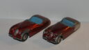 ParticipantI min gennemgang af to lots dukker to næsten ens røde Jaguar XK120 op. De er i hvert fald lige medtagne og mangler begge et rat. Men vender man bunden i vejret, afsløres forskellen. Jaguar og Alfa Romeo er modelangivelsen. Som Peter skriver i sine artikler om de to biler, har de mange fællestræk fx vindspejl og bundens konstruktion. Det er derfor sket, at montagepigerne har fået byttet rundt på bundpladerne, som Peter også har konstateret.
