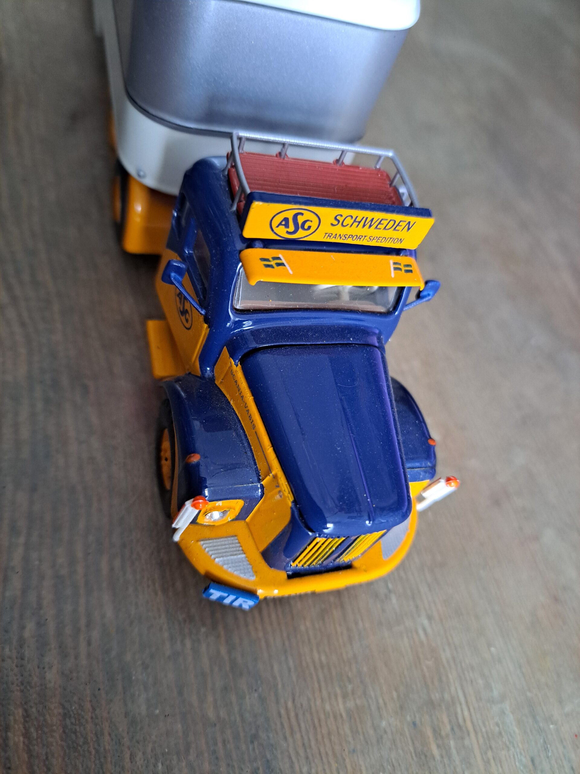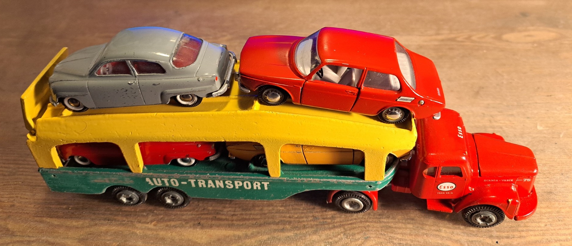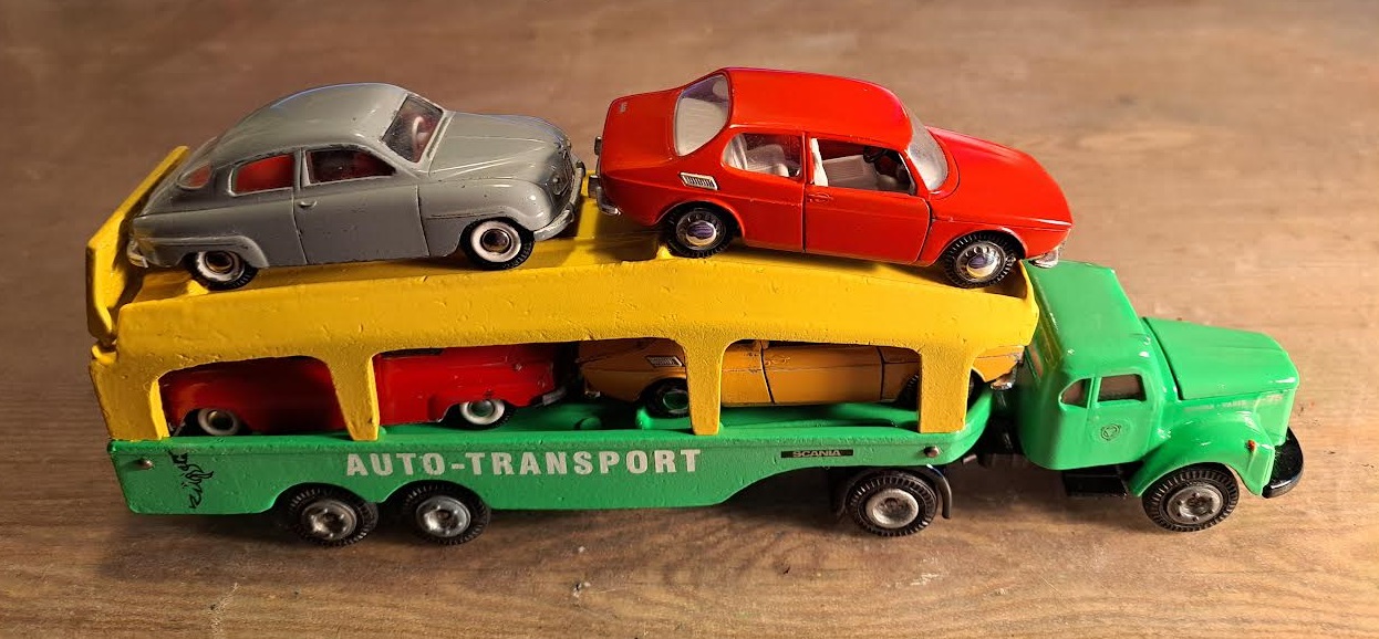 Din autotransporter med Scania er blevet flot. Og en god ide med griffen på hver side. En rigtig Södertälje vibrator. Også dine andre biler er flotte. De vil pynte i en hver samling.