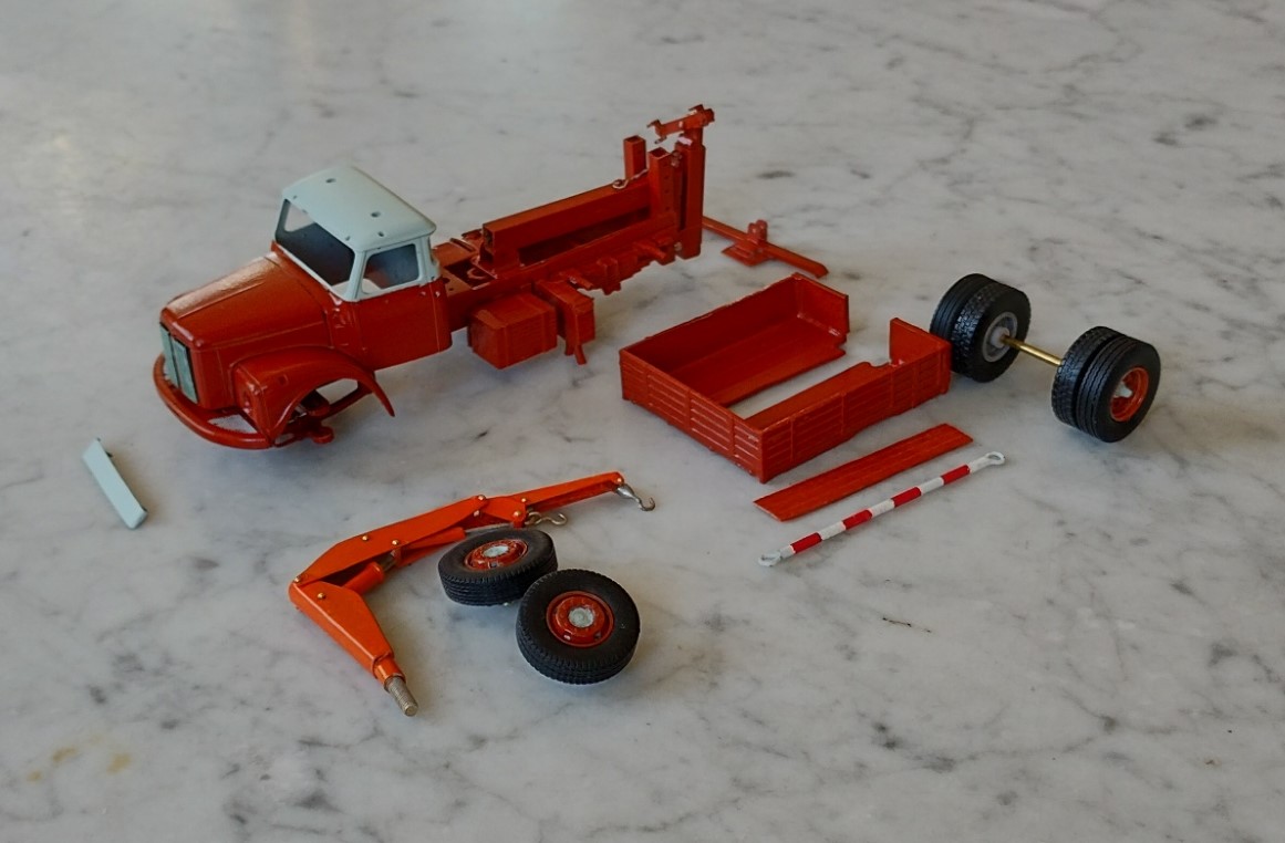 Svebøllebilen er nu blevet malet. Kranen har jeg malet i HIAB standard farve. Farven fremgår ikke af billedet, men ikke mange malede kraner i bilens farve. Så jeg håber det er rigtigt.