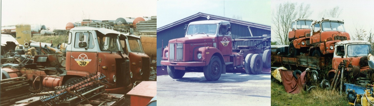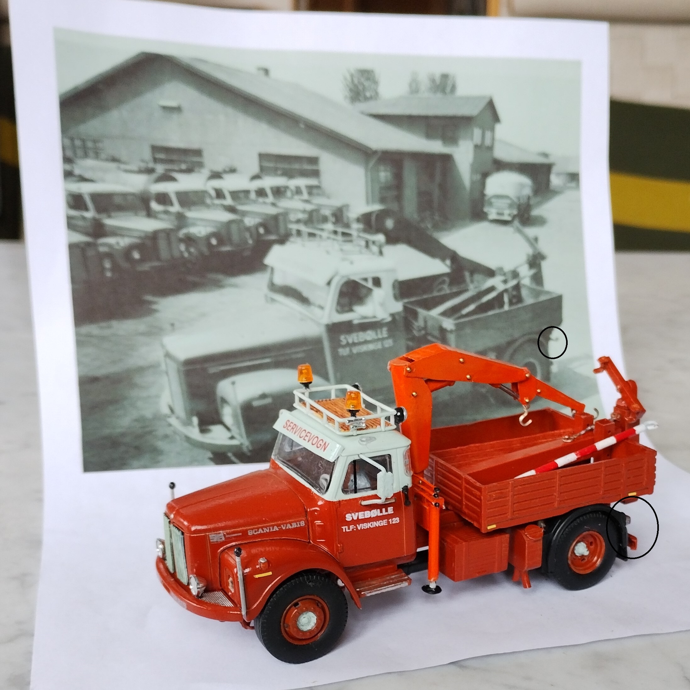Rigtigt at de fleste gamle Scaniaer og Vabiser havde samme farve som gitteret omkring lygterne. Men mente jeg også Johs. Rasmussen bilerne havde, indtil jeg så nedenstående billede. Og på billedet af servicevognen kan man heller ikke se lyse felter omkring lygterne på bilerne i baggrunden. Billederne er lånt fra https://www.dmc-decals.dk/50279562.html