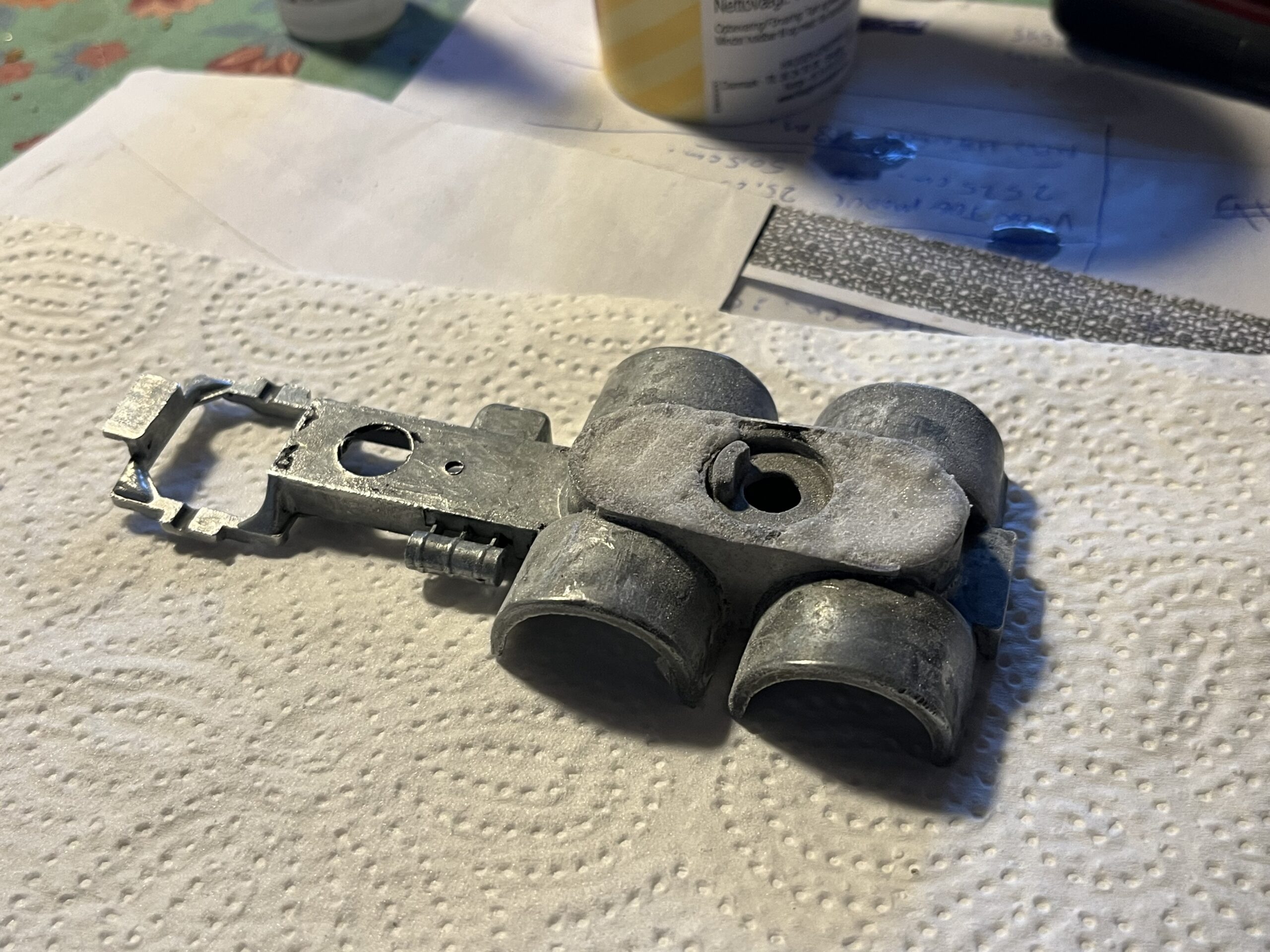 I have a few projects on the go at the moment , a green Vilmer scooter , a Molberg tractor very good parts from Peter and the white Jaguar I almost shed a tear when I damaged this white metal model kit the roof was crushed but I am getting there slow process , luckily I airbrushed the white paint so once repairs are made I will be able to blend the paint together without any problems.- Dette svar blev ændret 1 years, 9 months siden af