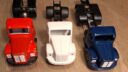 Reservehjulene på chassisrammerne, er istedet for en møtrik til at holde bilerne sammen.