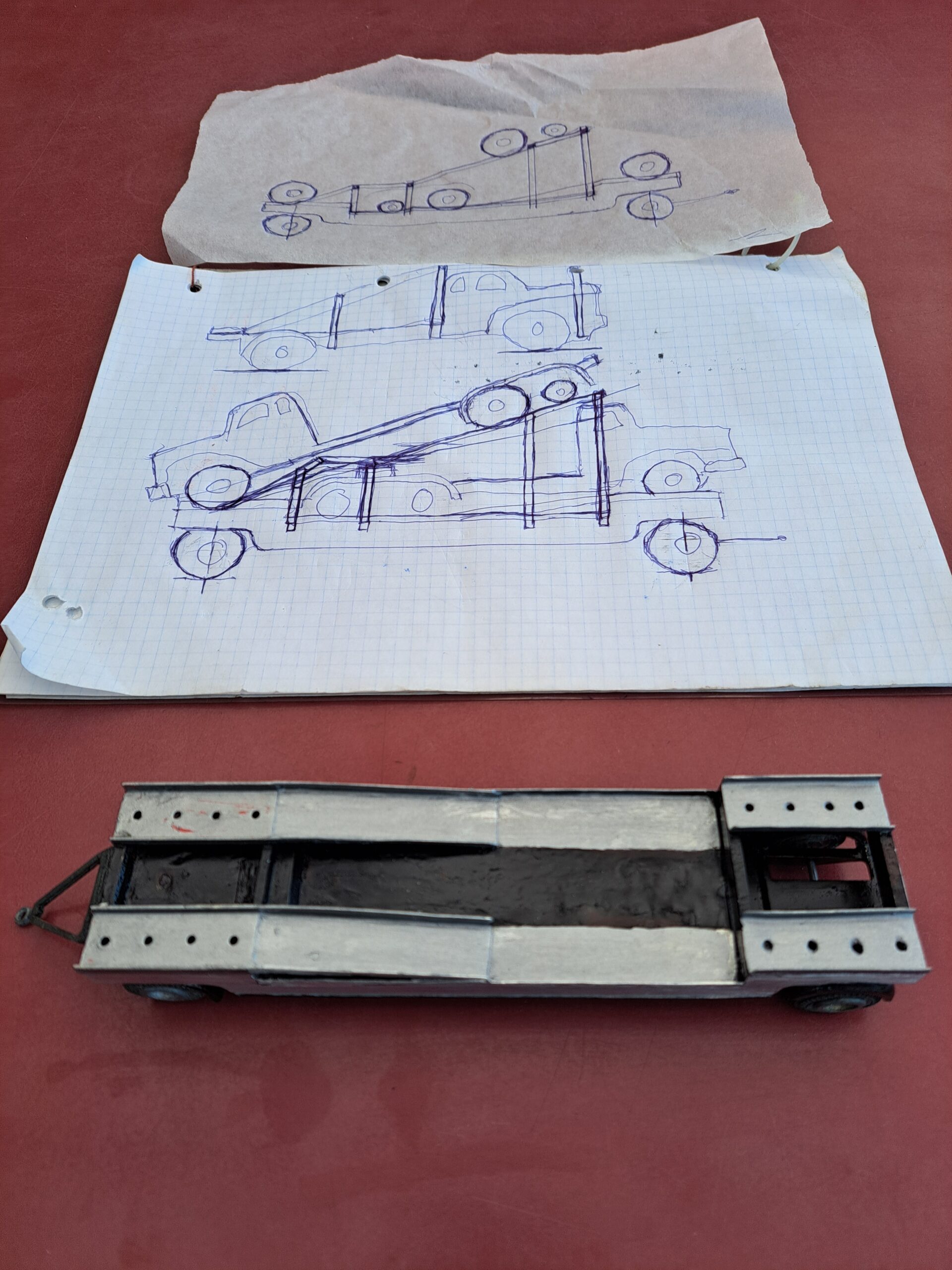 mockup af forvogn/trailer – bilerne er ved at blive malet.