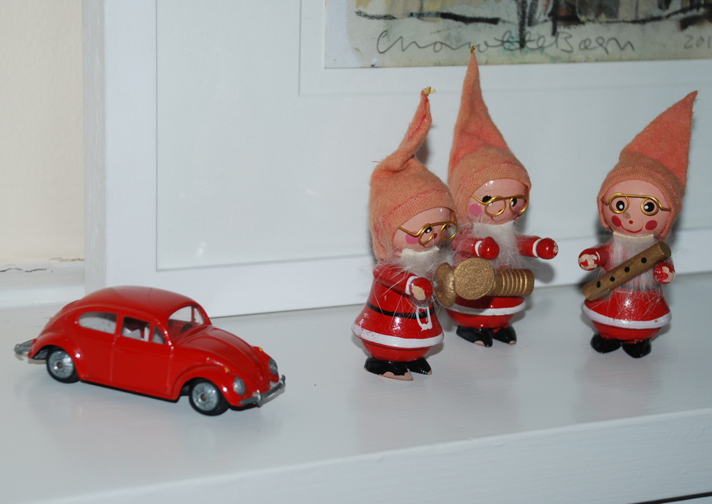 Så blev der pyntet op i vores dagligstue. Min kone gik på “rov” i vetrineskabene, så nisser, krybespil mm. blev suppleret med Teknobiler i den rette farve.