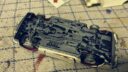 I bunden bag den forreste kofanger sidder i en plastikpit. Den trykker du på med en kuglepen samtidig med at du trækker kofangeren ud – så skiller bilen sig ad.