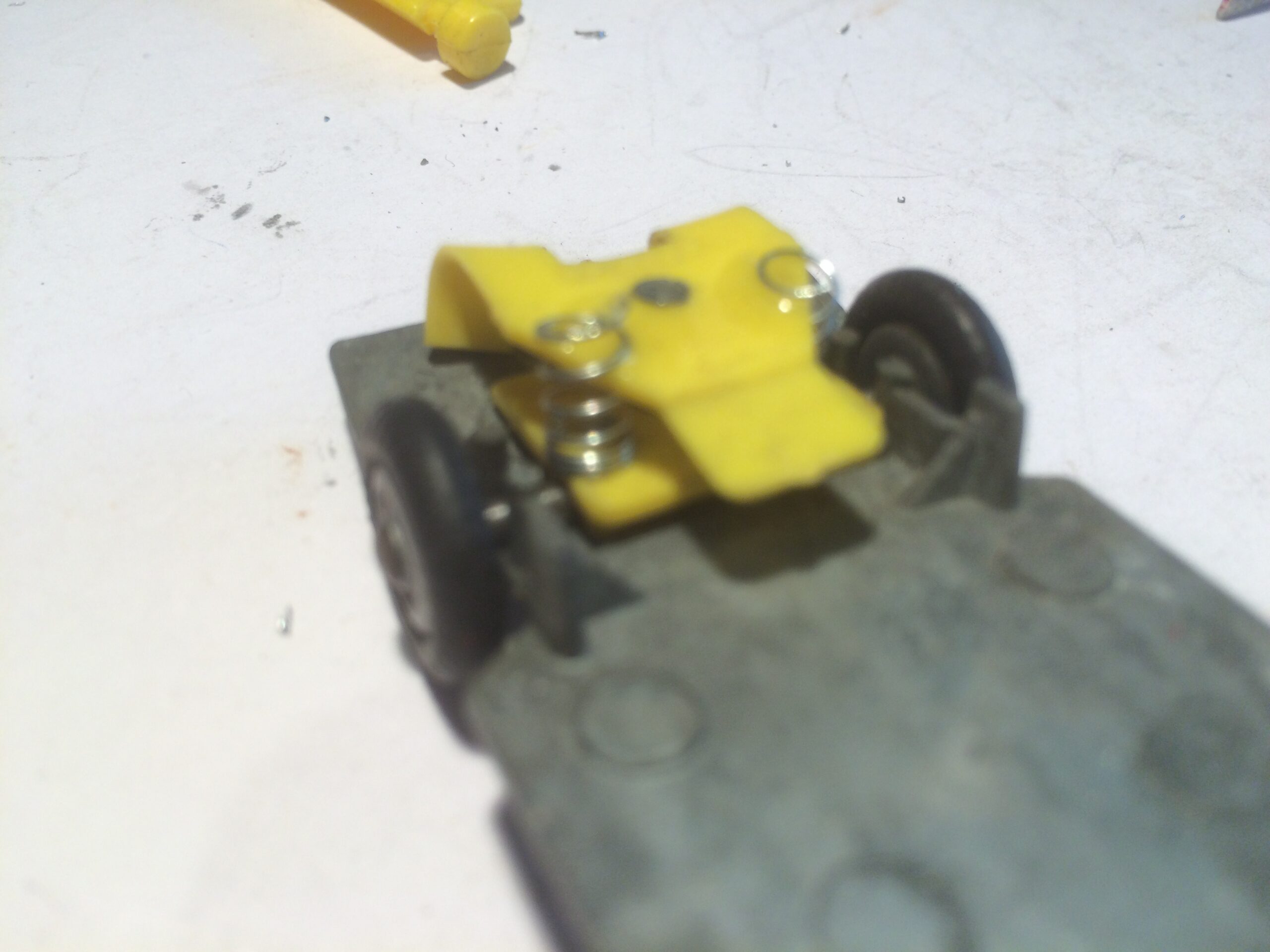 ParticipantNu stod den gamle IMP for en større tur. Men dette plastik fjeder system knækker ofte også på mange andre Corgi modeller. Man kan ofte med lidt nørkleri lirke en tynd pianotråd ind bag et hjul og mase den ind under interiøret og ud over den anden hjulaksel også. Få kommer der affjedring både for og bag, og man skal gøre det i begge sider, eller kan modellen komme til at se lidt skæv ud.