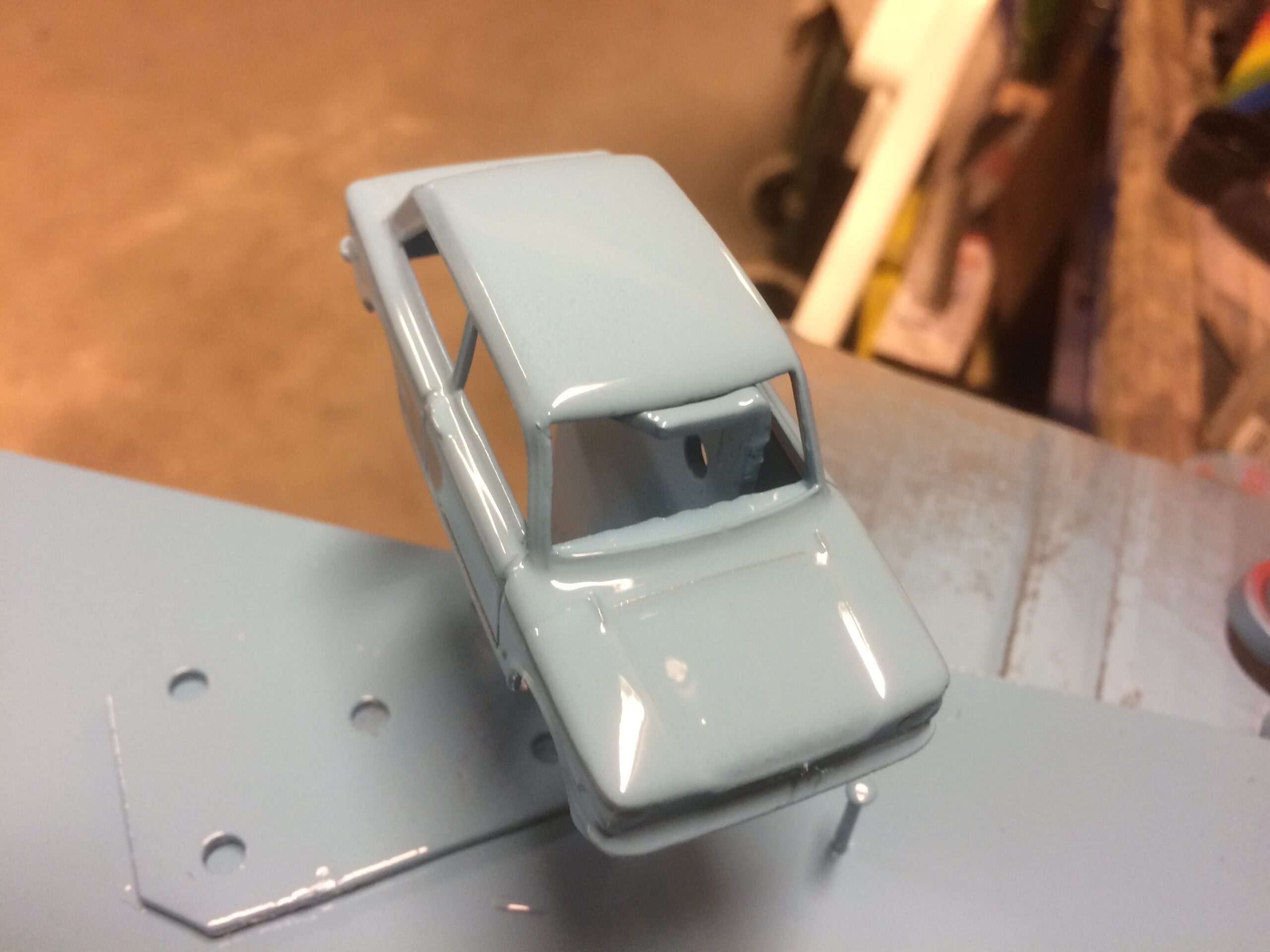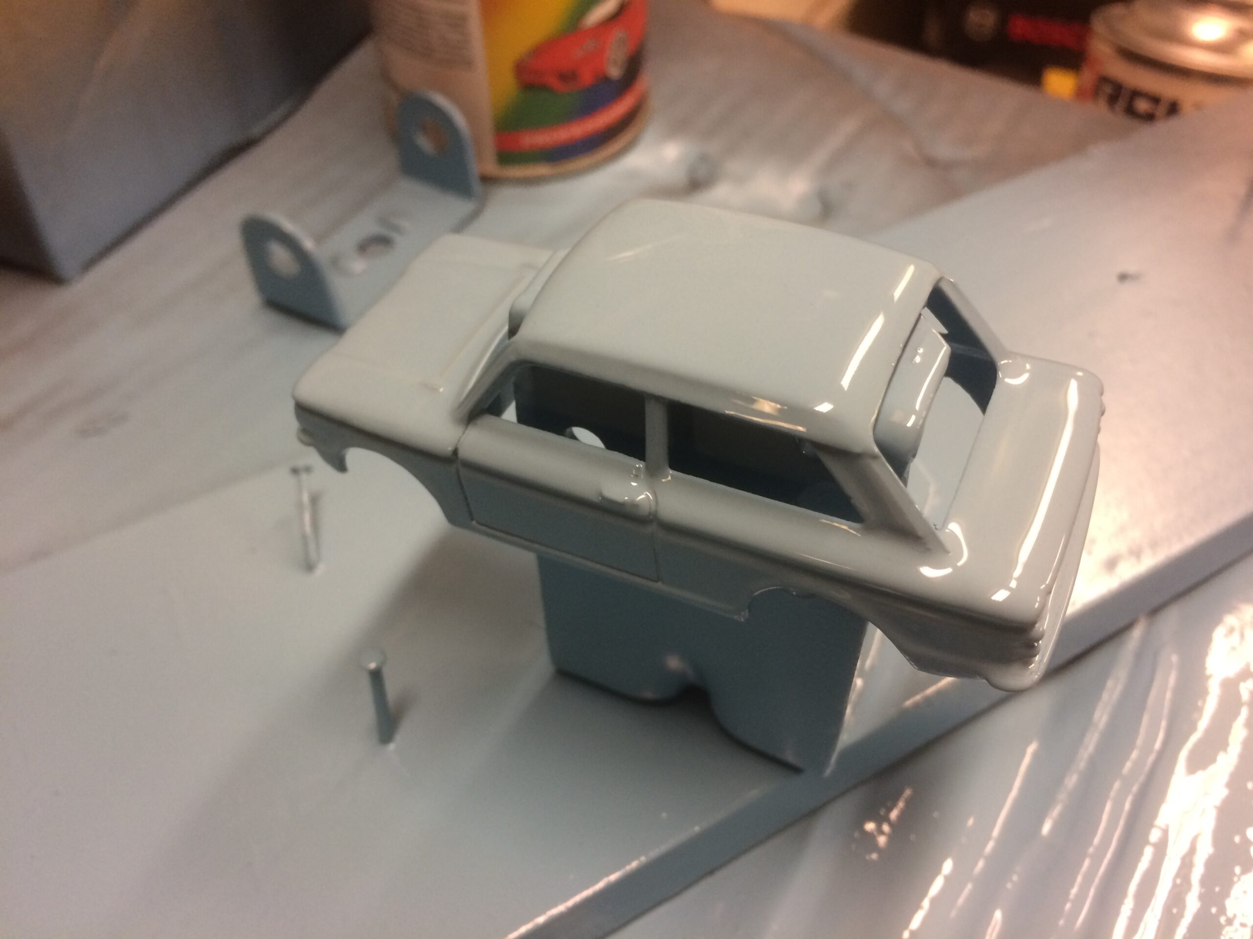 Så kom den gamle Hillman Imp til maleren og den blev lyseblå (babyblå) 👍😎🏁Attachments: