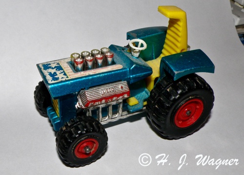 ParticipantHar set der står Lledo på en Super King, mod tractor nr. K-3,,, fra 1973… Hvad er nu det for noget. Jack Odell , den ene af de tre der startede matchbox havde sit efternavn stavet bagfra (Lledo) vidst allerede som soldat under WWII… Han forlod Matchbox i 1973 … Han var mest til veteranbiler og yesteryear serien skyldes hovedsagligt ham… Det er normalt at formbyggerne lader sine initialer stå på fx. bilernes nr.plader mv. men Lledo ? han var jo stoppet for en periode… kunne være morsomt om der var flere af disse Matchbox “Lledo” modeller. Navnet er vidst på et par modeller og denne er den ene. Skulle efter sigende være til ære for Odell. Yesteryear serien var stoppet et par år grundet strejker, materiale mangle, brande og oversvømmelse, så man kunne ikke sætte navnet på en af dem. Odell lancerede selv i 1982 Lledo modellerne. Det interessante er at der ikke er nogen, der som sådan har noteret dette LLEDO fænomen. Og det skyldes måske især det faktum at ingen synes disse Super King modeller er særligt interessante. Det er de måske heller ikke. Designet er i denne periode temmeligt klumpet, og meget langt fra hvad man kunne forvente Jack Odell kunne finde på at frembringe. Ikke destomindre har en del af modellerne, også de mere ekstreme varianter, eksisteret i virkeligheden. Jeg har dog ikke fundet et rejelt frbillede for denne traktor — endnu — Men spørgsmålet er åbent — Er der flere Lledo/Matchbox modeller