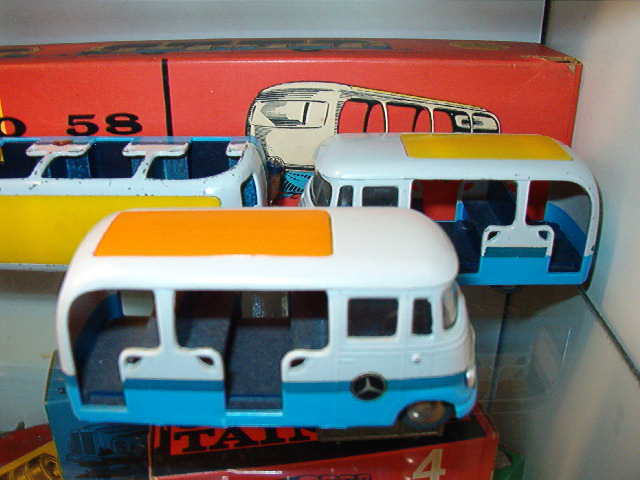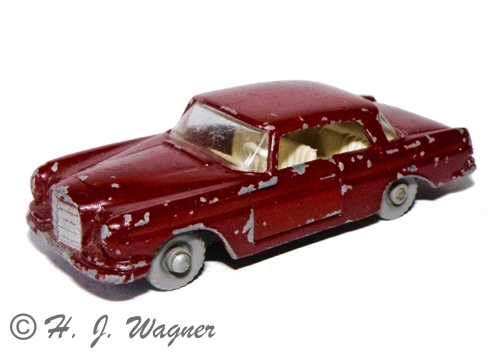 Mercedese´r kan blive et stort emne hvis man lufter dem alle typer og modeller, og fra alle mulige og umulige fabrikker.Her er nogen af mine Matchbox 1-75 modeller fra hylden. Den mørkerøde bære nr 53a er fra 1963 og en 220SE model. Meget sjovt er det samme model fra Corgi og tror også Dinky havde den. Går man det lidt efter så er det ofte Matchbox og Dinky der har samme modeller. Kan de sælges følger Corgi trop. 53a er skala 1:73 – 20mm eller 00