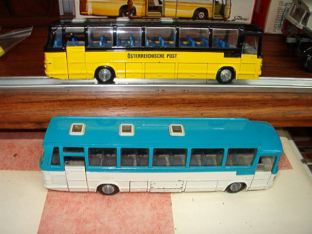 Bussen nr. 68 er en fin model med et flot tag. Alt det hvide er plastik. Modellen levede i perioden 1965-70 og er i skala 1:90 – HO.. Mercedes-benz O-321 H, er forløberen for Tekno Mercedes bussen