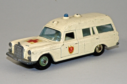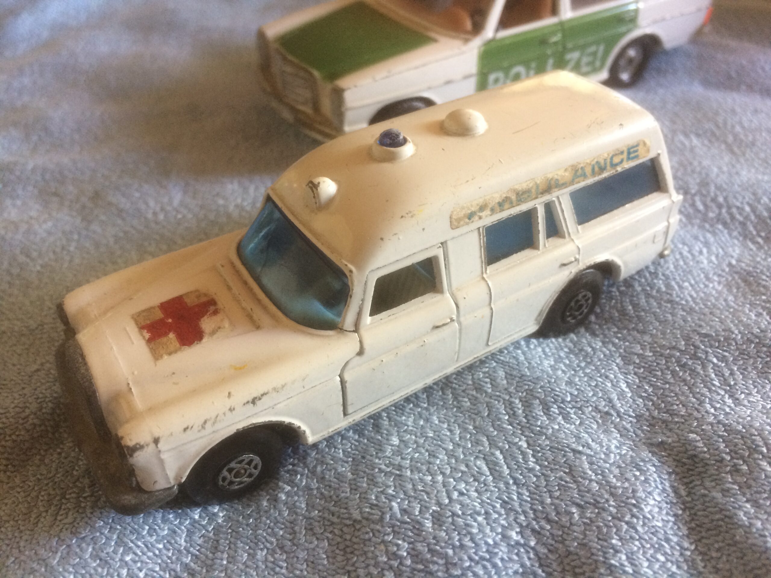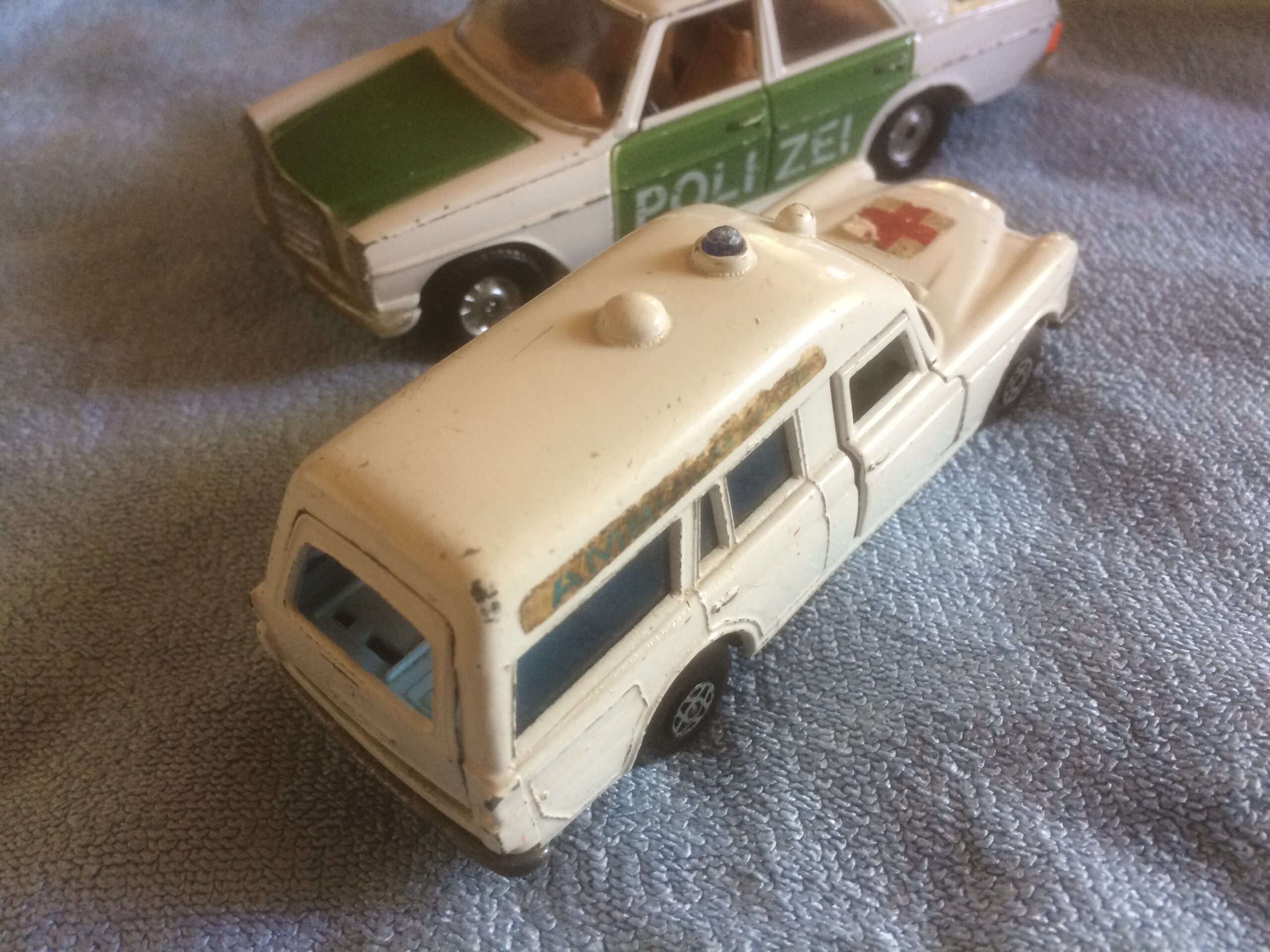 Jeg fandt denne gamle Siku Mercedes Benz ambulance på et loppe marked her forleden