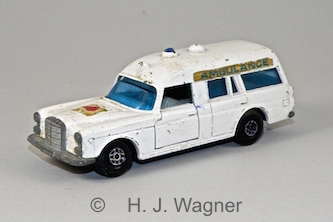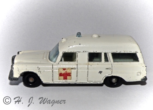 Nr. 3 var en Binz, Ambulance. Binz havde bygget rednings køretgøjer siden 1930´rne. For VW entusiaster kan nævnes at der første VW dobbeltkabiner i 1950´rne også kom fra Binz. Matchbox Ambulancen fortsatte ind i Super Fast serien, også i en militær udgave. Den holdt skruen i vandet rigtigt længe. Skala 1:69 eller S