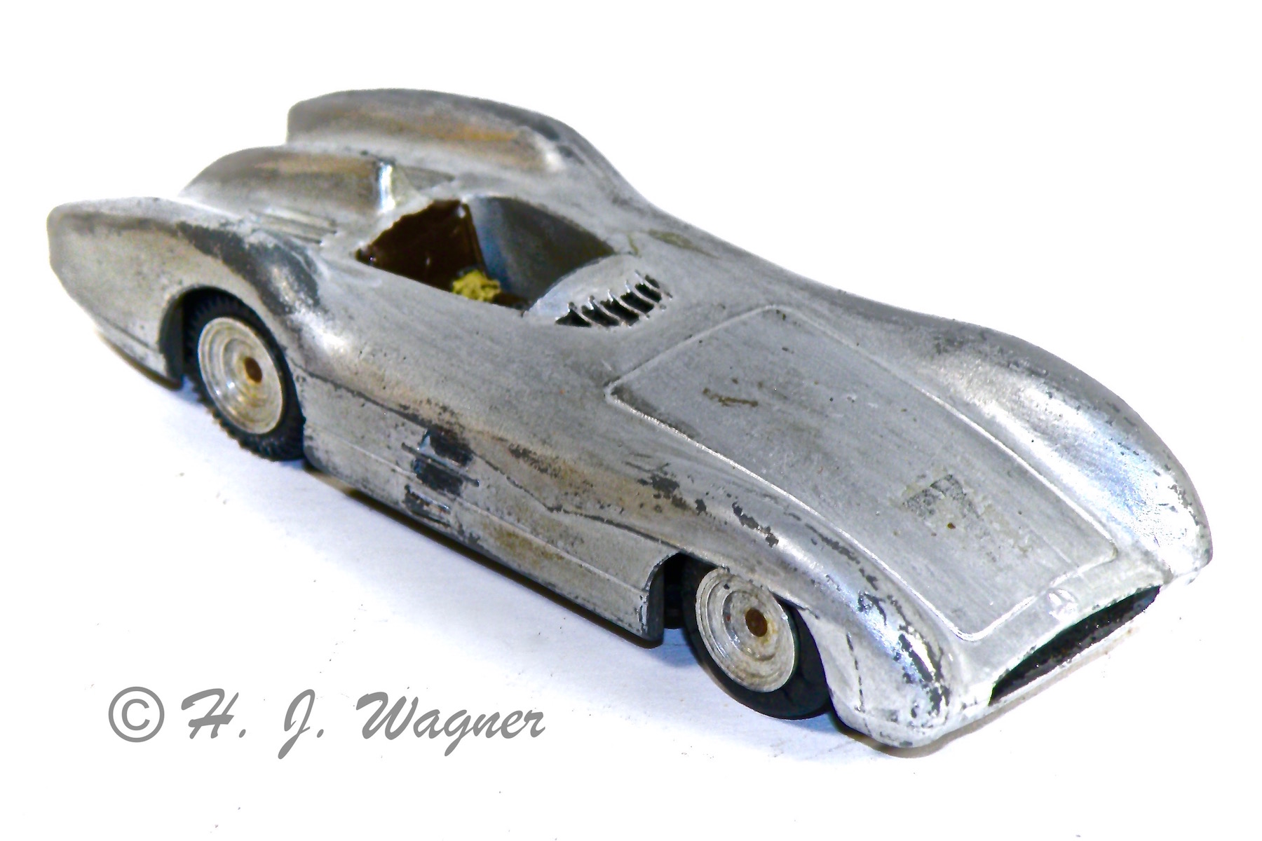 Märklin Raceren er fra 1955, og var i produktion til 1965. I virkeligheden havde vognen en lidet flaterende historie og var nok den bil der satte Mercedes ud af spillet for formel vognene, og Le Mans, race i mange år. Mercedes stoppede efter denne katastrofe, og indtil de mente af sikkerheden for publikum var iorden. 83 døde ved denne ulykke.