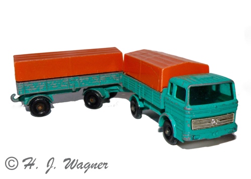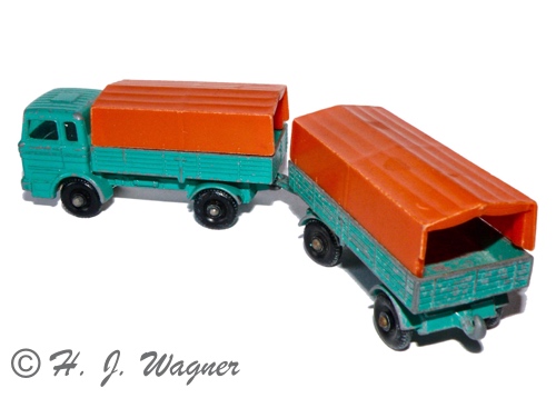 Nr. 1e + nr. 2d er en Mercedes lastbil og en anhænger til samme. De o startede op i 1968 og kørte videre i Superfast serien. Skala 1:87 – HO
