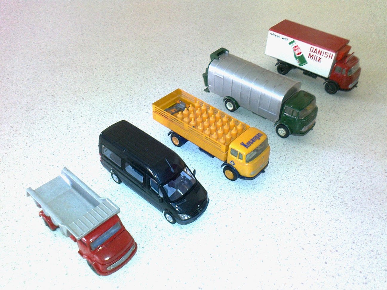 Her kommer 5 vidt forskellige Mercedes modeller fra min samling.Jeg har i øvrigt to Tekno Mercedes LP322 lastbiler i meget dårlig stand, som begge mangler dele og har flere defekter, men hvis jeg tager det bedste fra dem begge, kan jeg lave en hel intakt lastbil, så det kommer til at ske på et tidspunkt. Men det er slet ikke fastlagt hvordan den kommer til at se ud i nu.