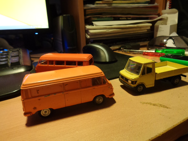 Her har jeg to Mercedes 206D biler som som man så mange af på vejene i halvfjerserne og en Mercedes 207D fra firserne.