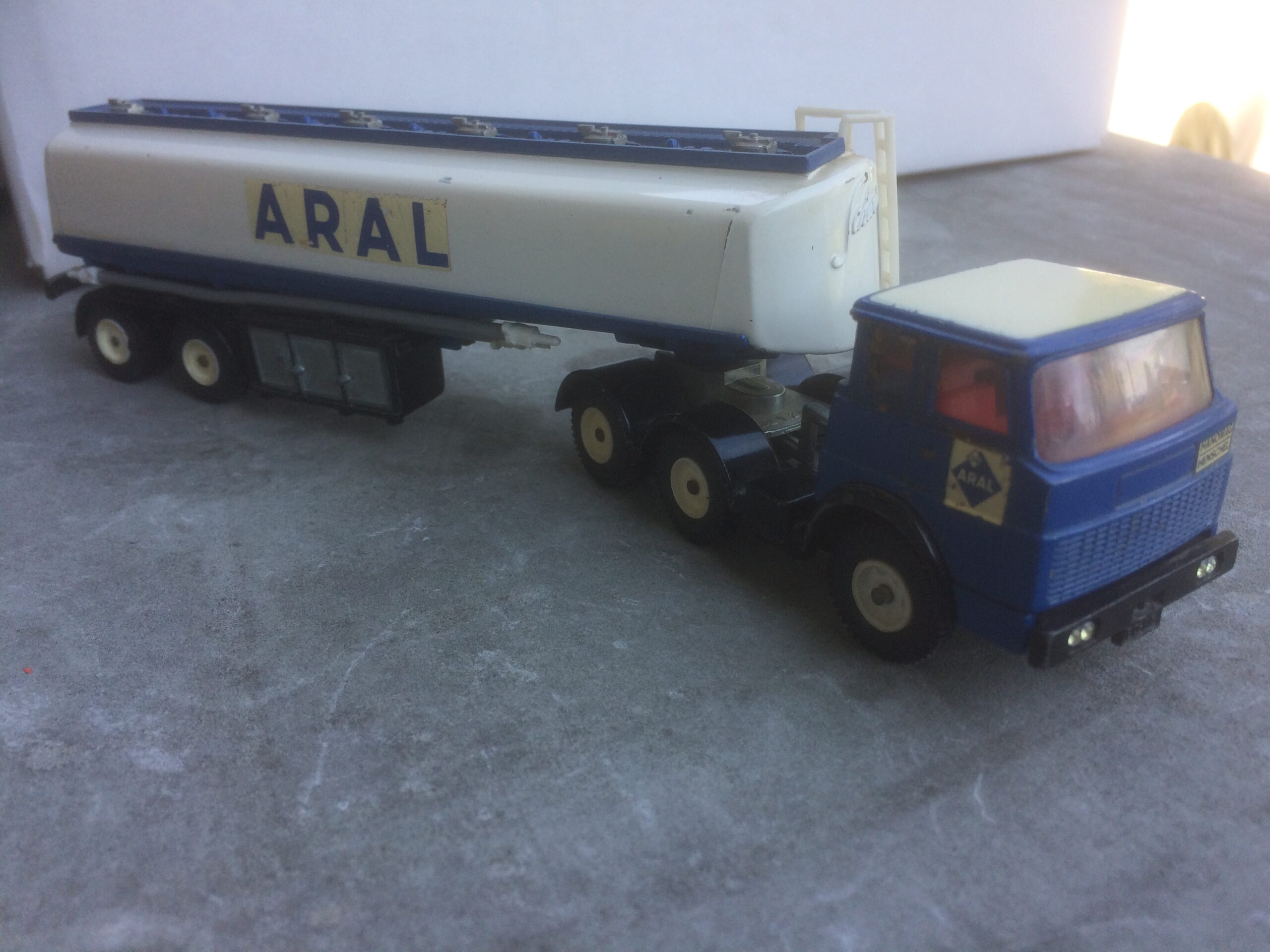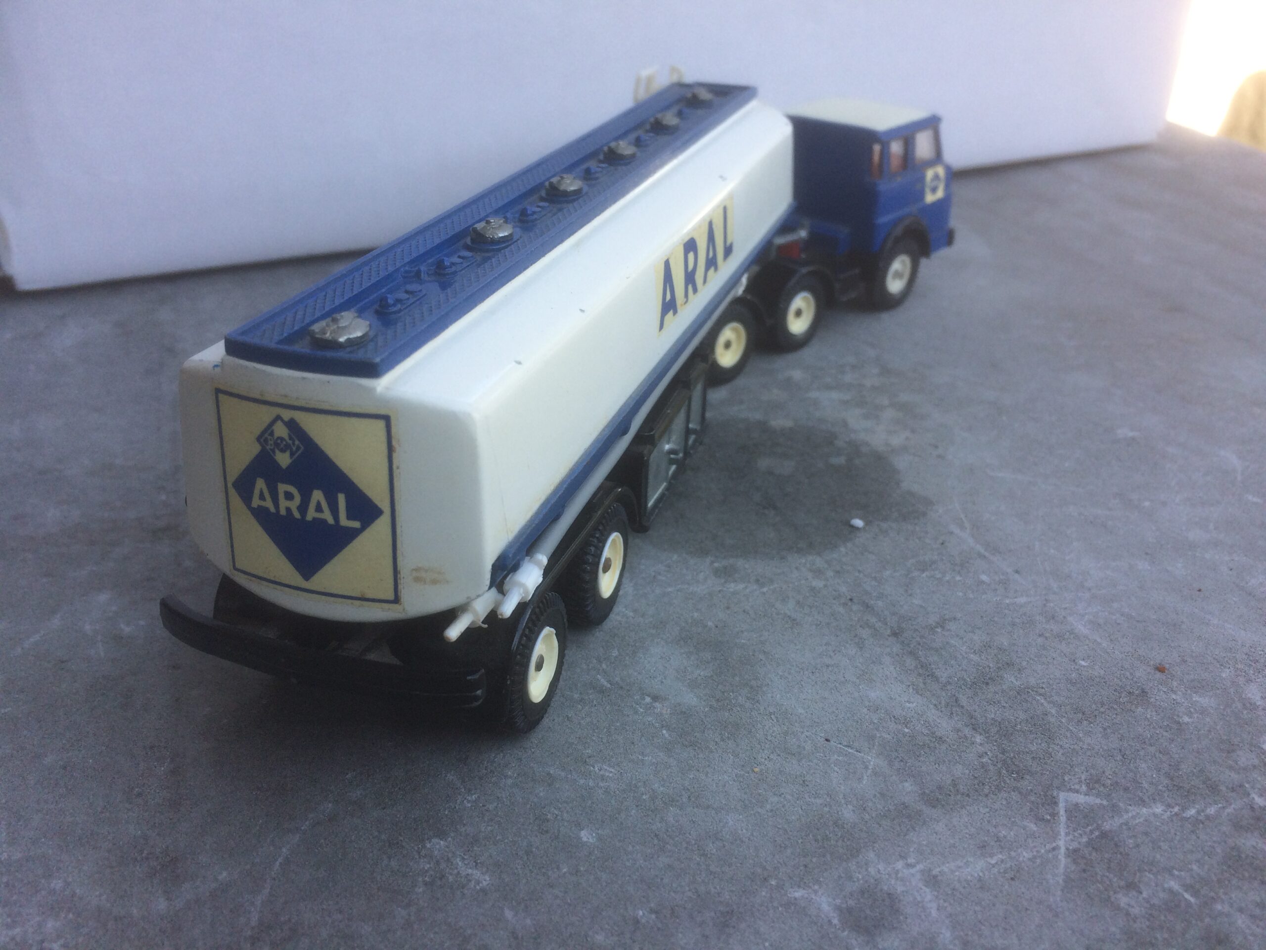 Så var man lige på et lokalt loppe marked og se lige her en Henschel F201S Aral benzin tank vogn fra Siku helt komplet med alt også de 4 slanger som ellers altid mangler må være en tidlig udgave siden der DR “perle”lygter på fandt også er forvogn magen til men med støbte lygterAttachments: