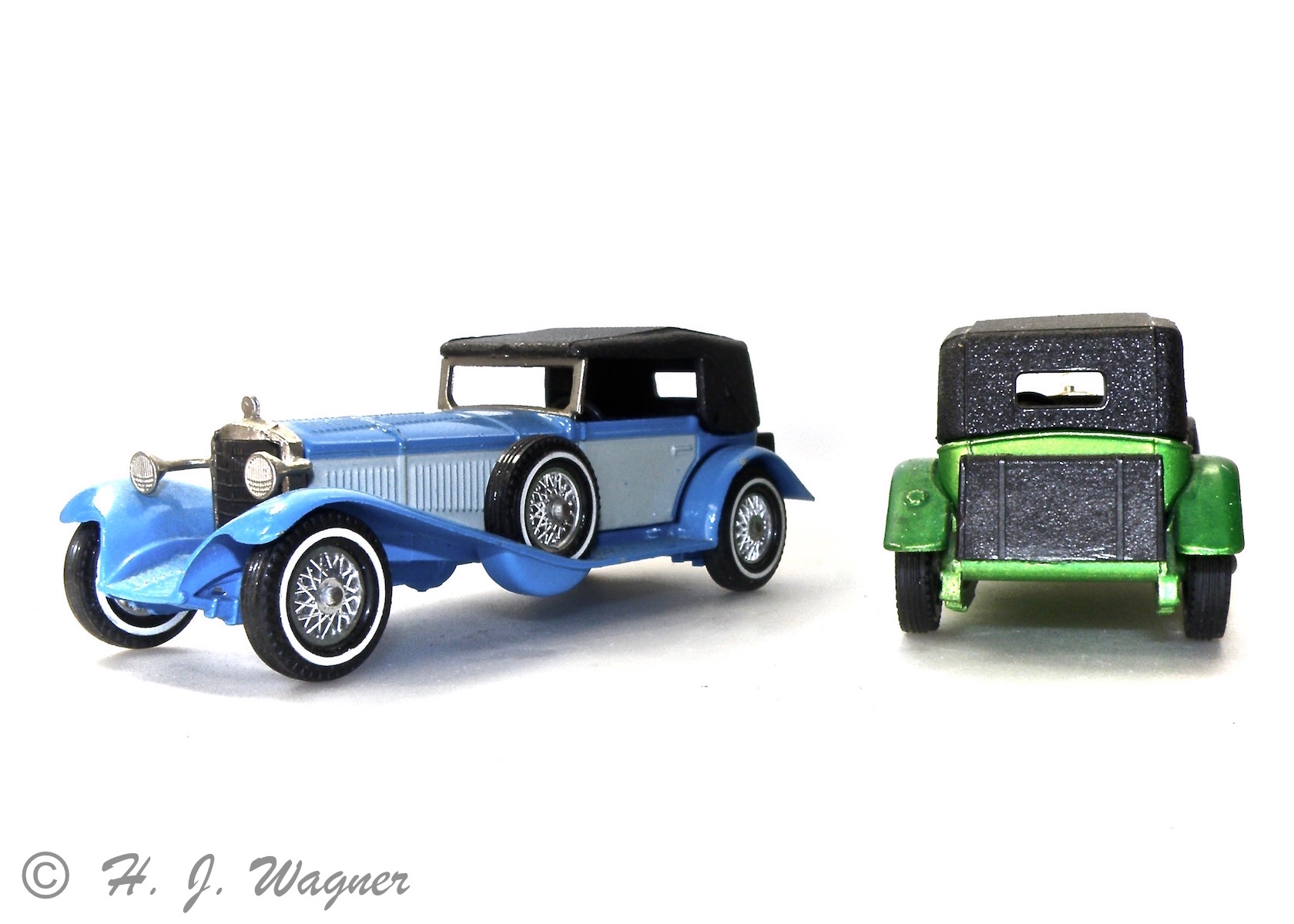 Participant1908 Benz “Mercedes” Grand Prix – fra Matchbox – models of yesteryear = MOY, serien — og en nyere model fra samme serie — Mercedes-Benz SS fra 1928