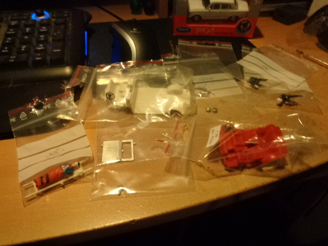 Som sagt har jeg været i Aars i dag, og jeg har selvfølgelig også været ved Model- og Hobbymesse. Som sædvanlig lykkedes det også at få et par projektor med derfra + at jeg også købte en stak Tekno-reservedele.Projekterne er en gammel Ford Taunus 17M, som jeg faktisk manglede i Tekno, og en Lige så gammel VW 1200.
