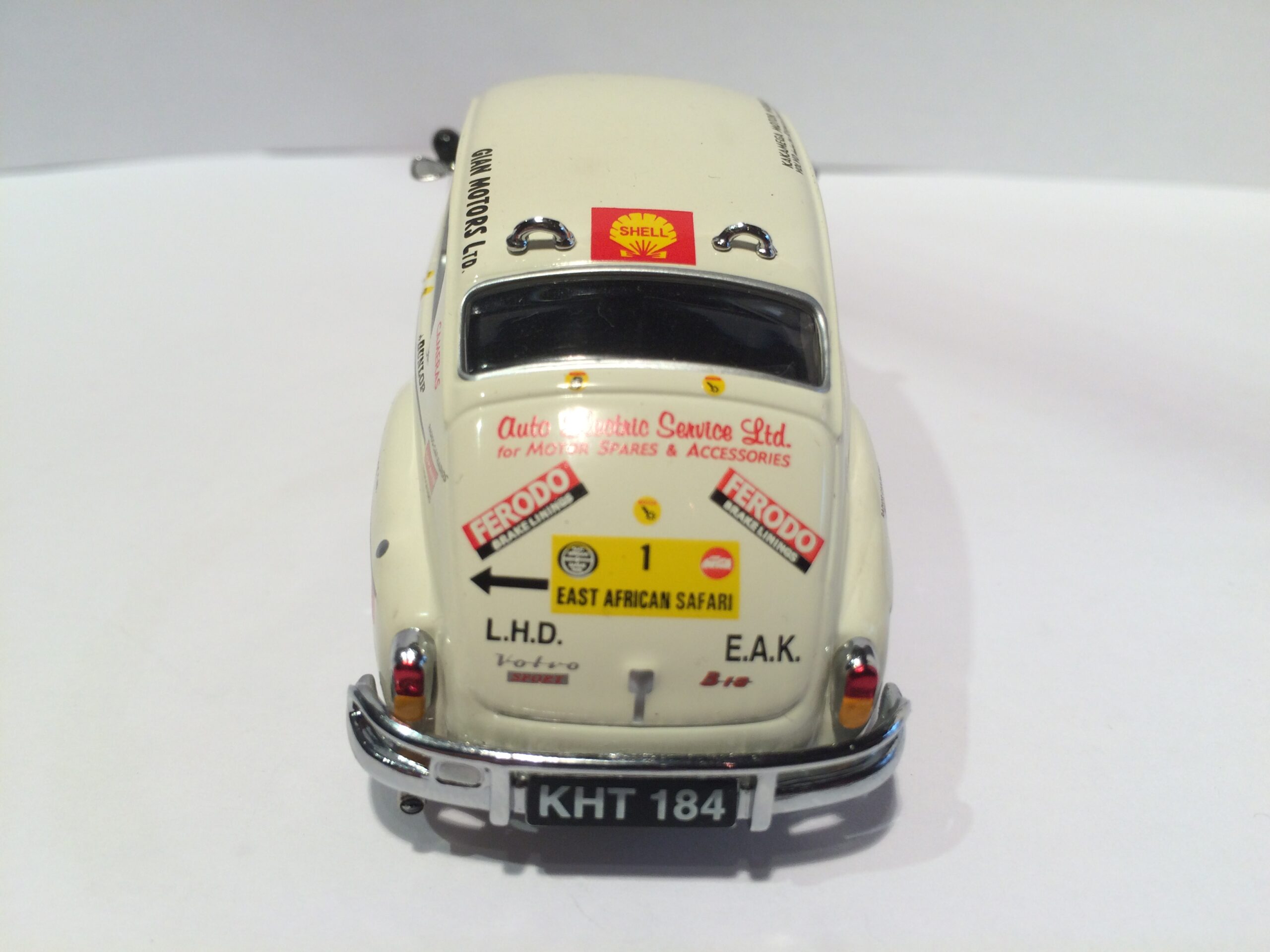 Den virkelige rally bil har heller ikke USA kofangere, og bestemt heller ikke stænklapper 😉 Jeg vil skyde på at VW har krævet at Corgi fremstillede den NY model vis de skulle sponsorere noget, for de skulle jo trods alt sælge biler. Bred nr. pladelygte på virkelig bil pr. august 1964 (model årg. 1965 ja) Det samme gælder trækruden. Den virkelige bil fik større sideruder også de bagerste, og forruden blev buet for model årg. 1965.
