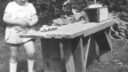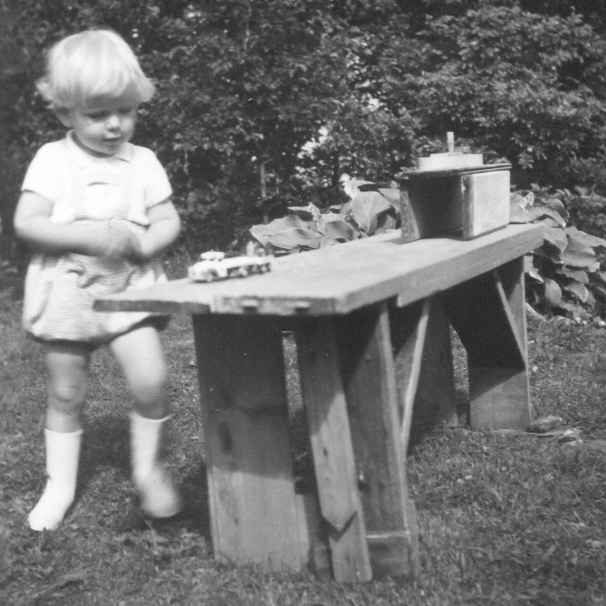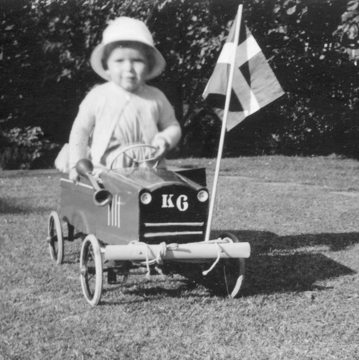 ParticipantJeg har fundet et par billeder fra gemmerne, der efterhånden har næsten 70 år på bagen. Det er mig på begge billeder, og man kan tydeligt se min glæde ved biler allerede den gang. Specielt er jeg glad for billedet med Tuborg Dodge med anhænger. Det var ikke mange, der havde et sådant komplet sæt på den tid. Garagen i baggrunden har jeg selv “bygget”.