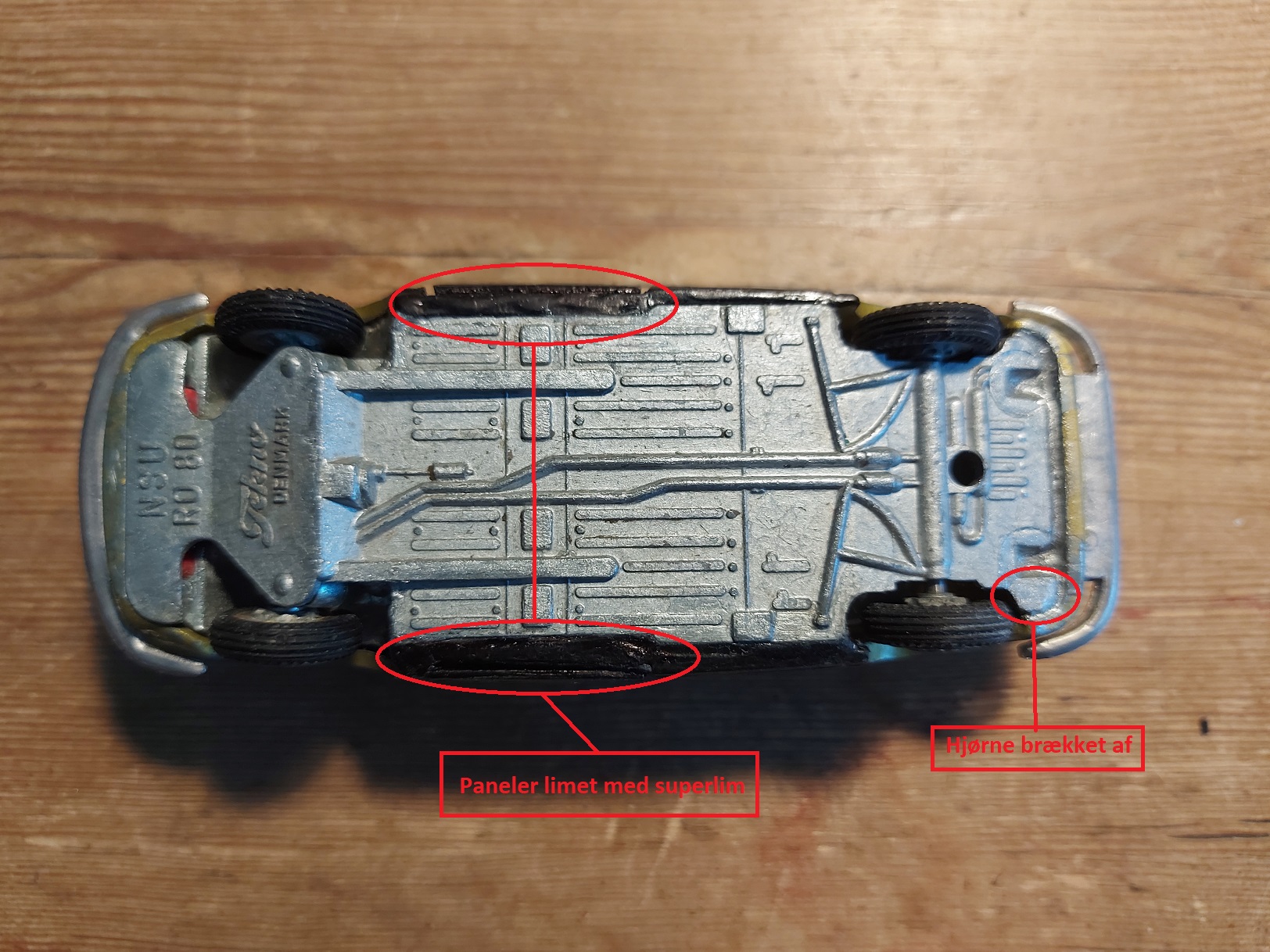 Mit “ladefund” har været en tur på værkstedet og fået limet det stykke der manglede af vognbunden, ved venstre bag hjørne på. Bag kofangeren fik også en gang lim for at side ordentligt fast.