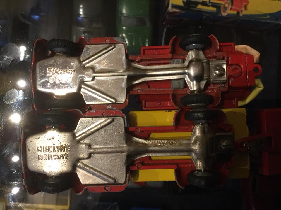Samme virksomhed lavede Lego ting under navnet Norske Lego, allerede fra 1953.Man havde derfor Lego Chevrolet bilen i alle versioner i sit program. MAn har sikkert derfor tænkt at det ville være unødvendigt at tage Teknos Dodge/Buick ind.MECLINE bilerne er :