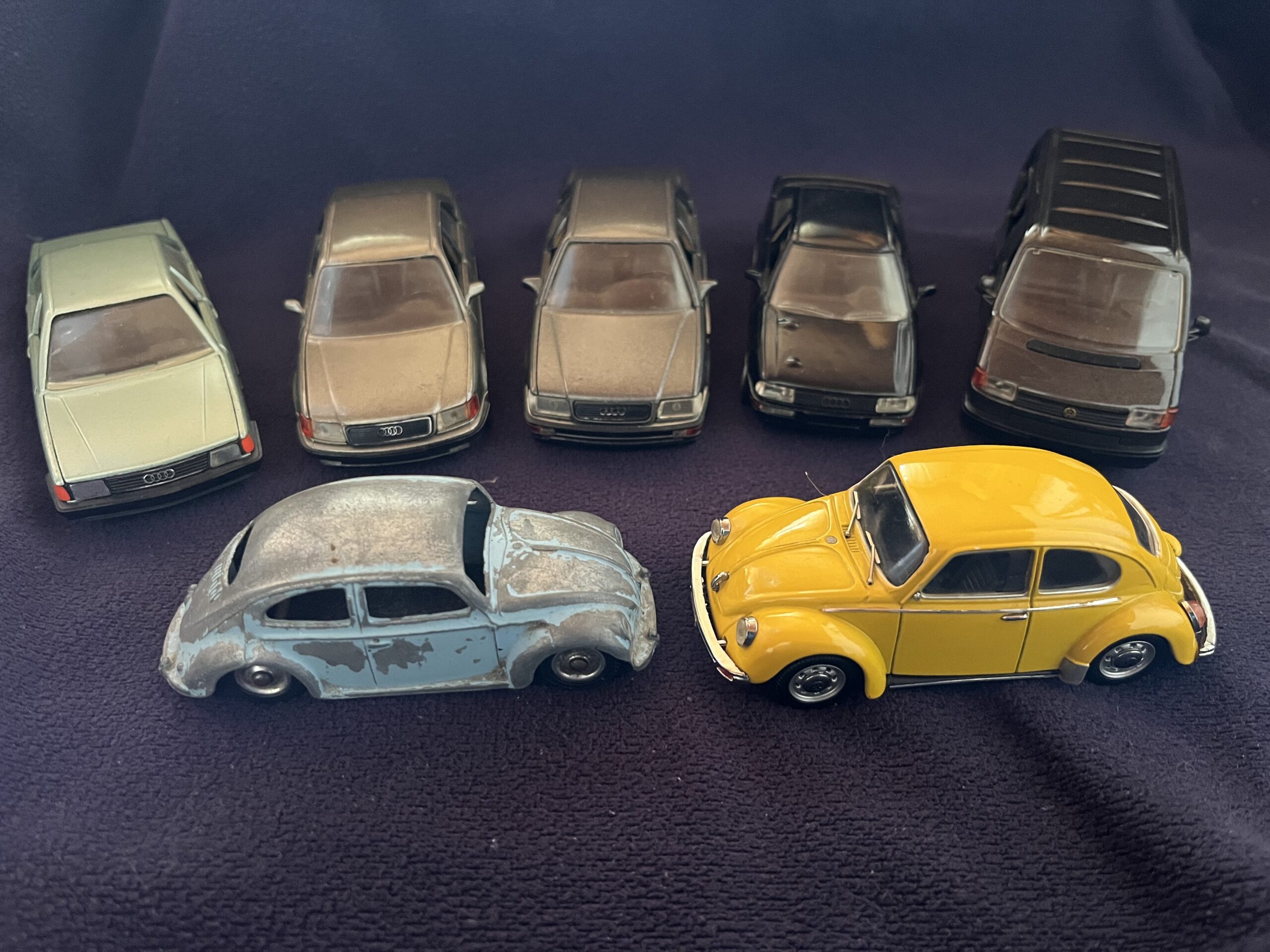 Så kom der lige 7 VW -Audi biler fra vores ven Peter hjem til min lille VW -Audi samling Den ene Audi Coupe skal ha malet forklappen om og den blå type 1 skak også ha en ny overfrakke 😊