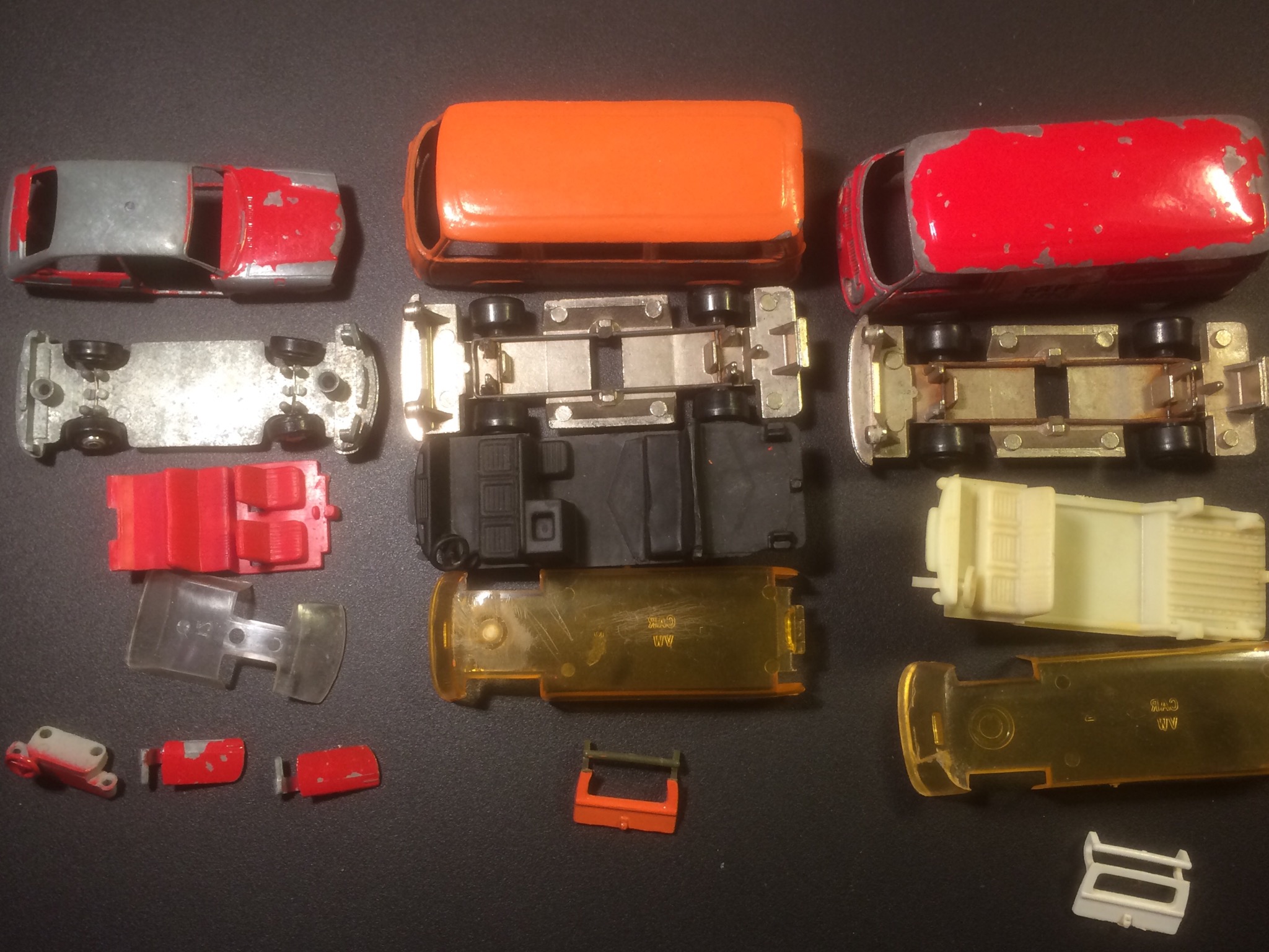 Så er jeg ved at gøre klar til 3 små projekter En lille VW 411 i 1:66 fra Schuco Og 2 transporter fra Majorette De skal lige en tur igennem det lille VW værksted Jeg mangler 3 stk bagklap til transporter fra Majorette og et sæt ruder måske der er nogen af jer der kan hjælpe mig med det ?? 😁 Mange model bil hilsener Ms Super