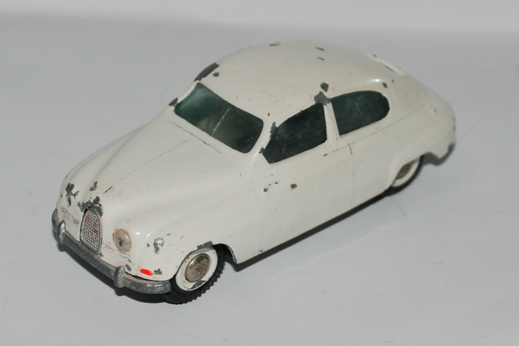 Så endelig for et par uger siden fik jeg fat i en hvid Saab 93 på Tradera for kun 271 svenske kroner. Men som det ses af billedet var den også udstyret med resterne af noget gult. Efter en kærlig pleje – vask er en god ting – blev den dog helt hæderlig at se på, når der også bliver anskaffet nye forlygter fra Peter. Men Saab er en sjælden modelbil – i hvert fald 93 og 96, som også Peter skriver i sine artikler.