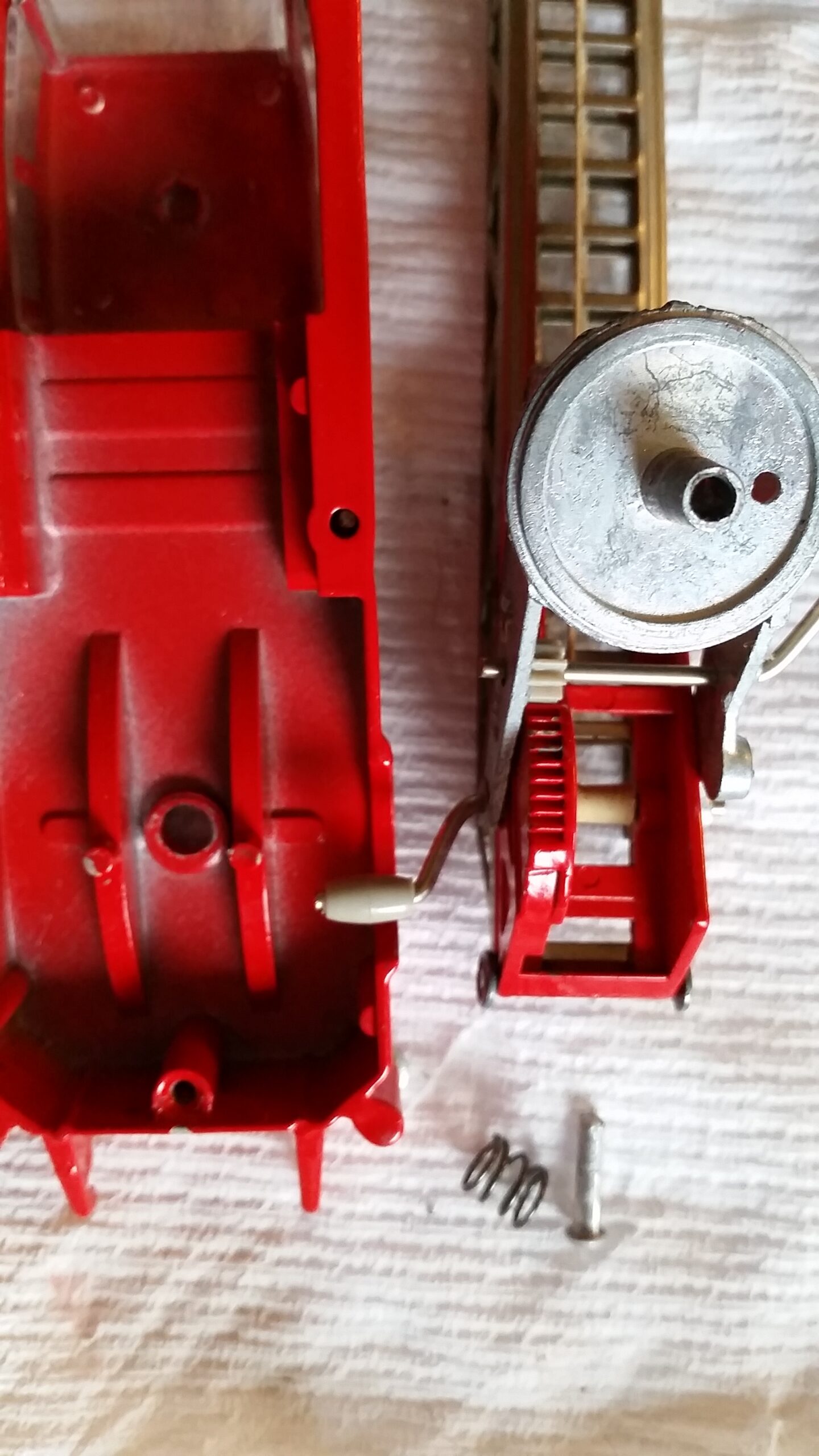 Jeg har en scania stigebil, hvor stige delen kan løftes af, indeni ligger en fjeder og en “nitte”, er der en tegning?