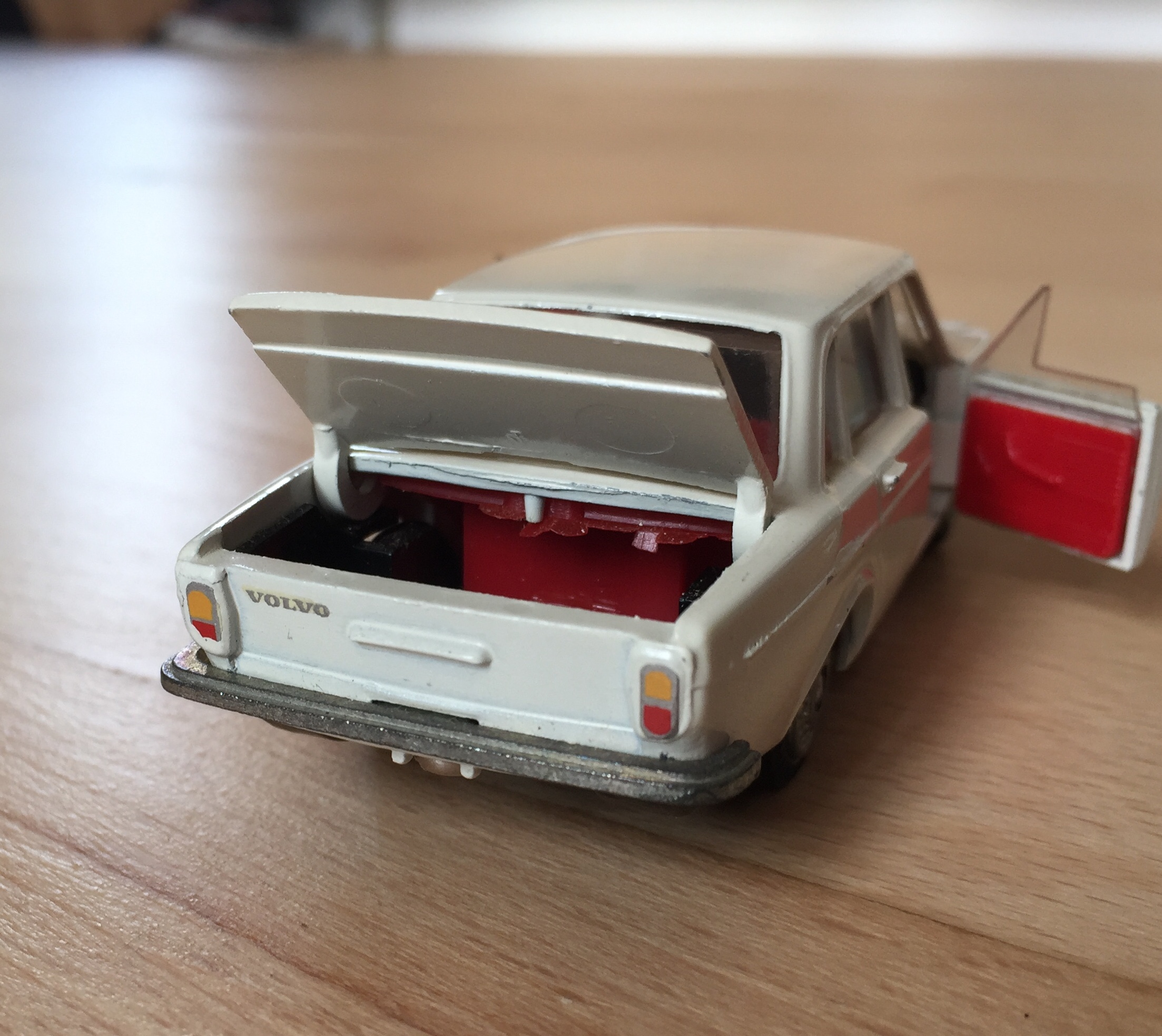 De 3 biler har nemlig alle fået små ændringer med årende, og nogen vertioner er mere eftertragtet end andre.Jeg har selv givet 500 kr. for denne fine Volvo 144 med ret fin æske.
