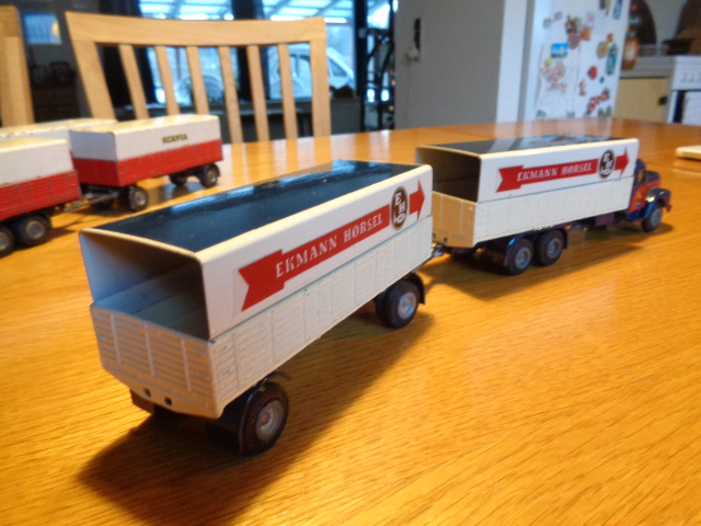 Jeg har for nylig købt et Scania hængertræk mere til min samling, nemlig en Ekmann Hørsel, som Peter satte til salg lige efter jul. Som man kan se på billederne her under er det en lidt tidlig udgave med det gamle lad. Men anhængeren har dog fået undervogn med forstærkning i mellem vangerne.