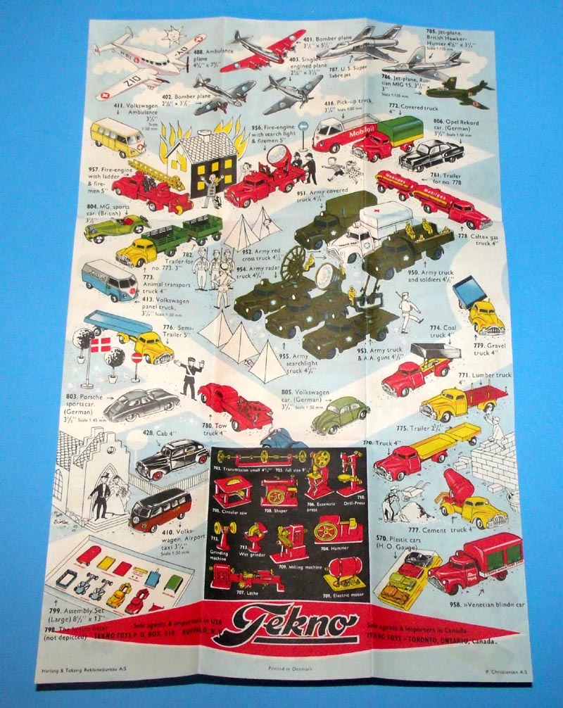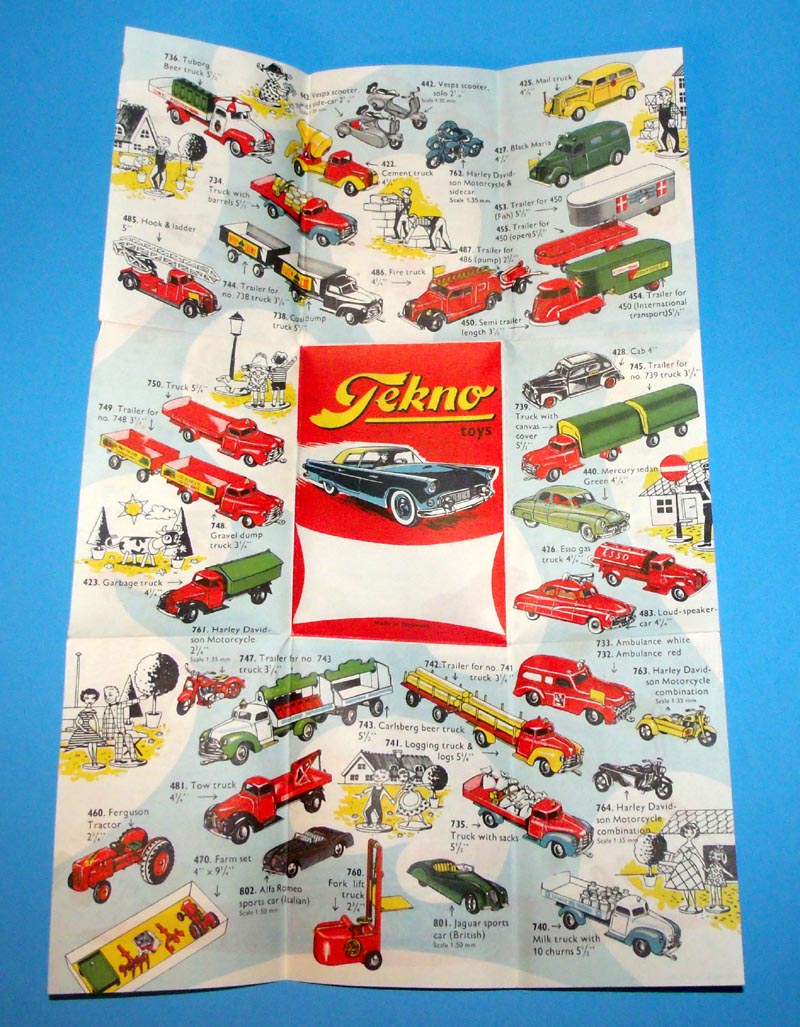 Her til morgen fandt jeg kopi af en brochure, jeg ikke har set tidligere, og som måske kan interessere andre her på forummet. Den beskrives som Vintage Tekno Toys Brochure Catalog #1. Fra samme sælger findes også Tekno Toys Brochure Catalog #2, som jeg har set tidligere, og som vist findes her på Peters site. Man skal nok ikke lægge så meget i numrene, for det ser ud som om #2 er den ældste. Men måske er der nogen, som ved noget mere om disse brochurer. Tilsyneladende er #2 kun trykt på den ene side, mens det lader til, at #1 har tryk på begge sider.